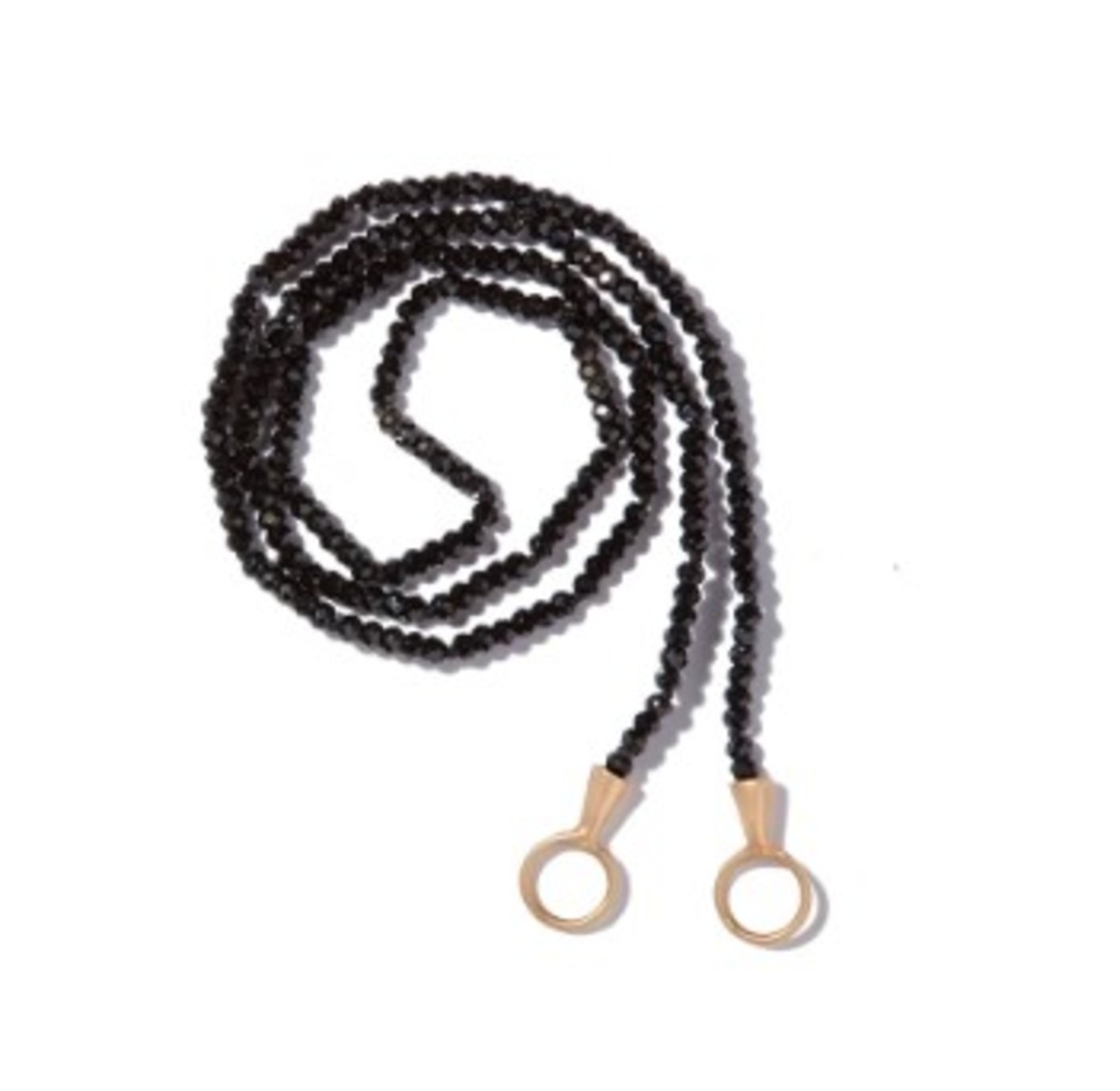 Black Spinel Bead Necklace with 14K Yellow Gold Loops.