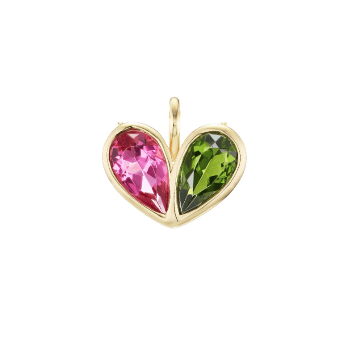 Jumbo Sweetheart Charm in Pink Tourmaline and Green Tourmaline
