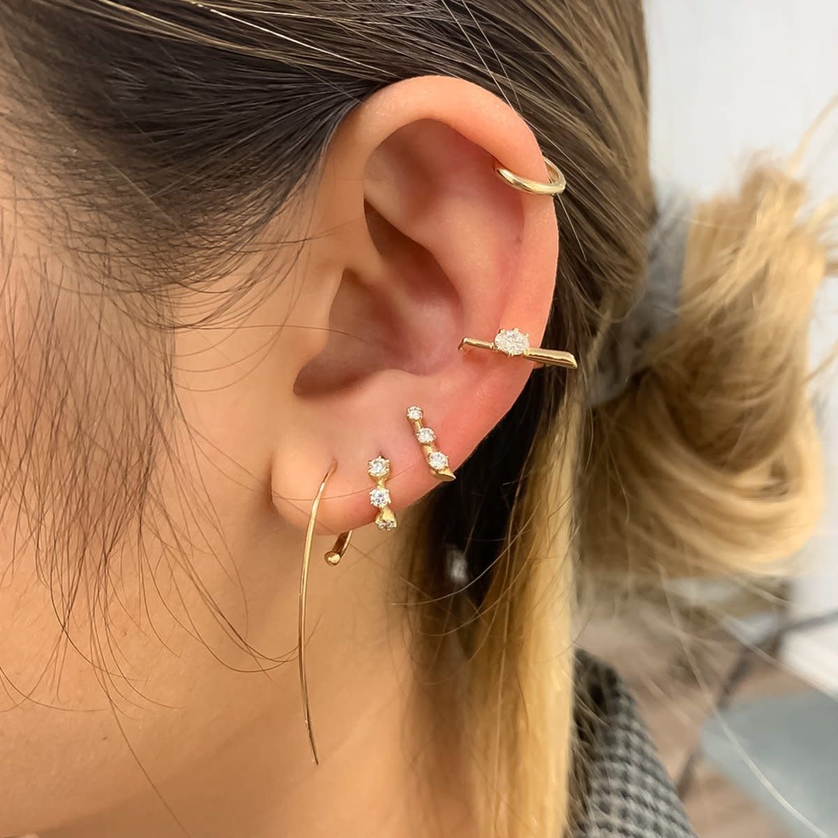 The Kismet 3-Stone Huggies Are The Perfect Addition Of Subtle Sparkle That Can Be Worn Anywhere On The Ear. Featuring 3 Round Brilliant-Cut Diamonds On Each, These Huggies Offer a Full Diamond Look Even On Your Smallest Jewelry Piece.