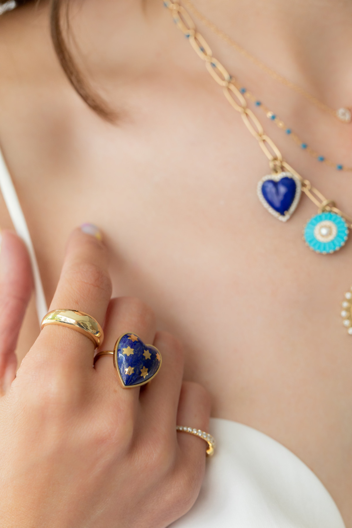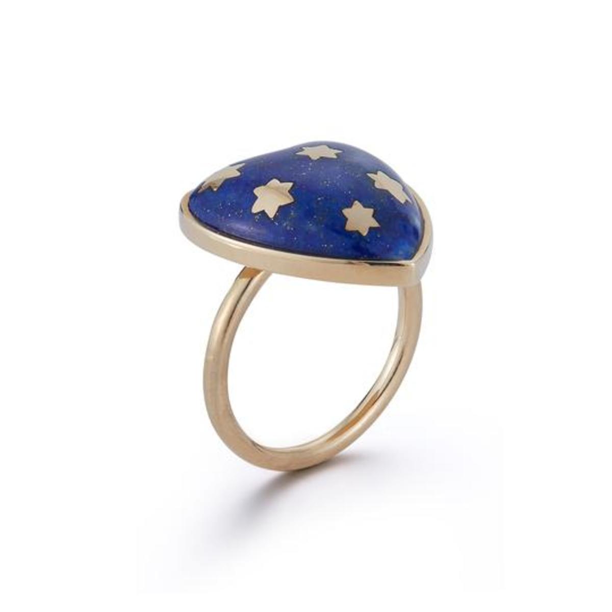 Lapis Lazuli Blue Anna Heart Ring in 14k Yellow Gold with Gold Star Accents
