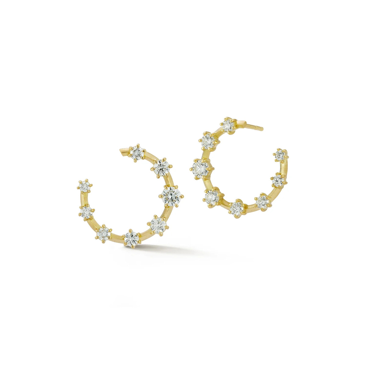 The Large Kismet Hoops by Jade Trau feature a beautiful front facing design with stationed diamonds for the perfect touch of scattered sparkle!