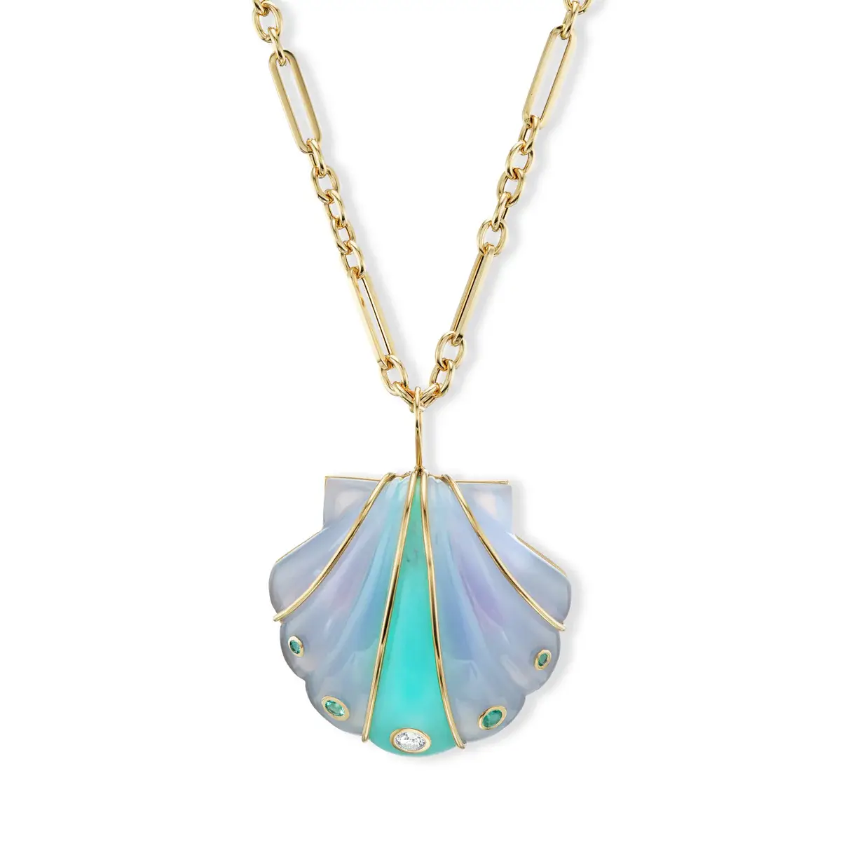 Large Stone Shell Pendant with Blue Chalcedony & Chrysoprase