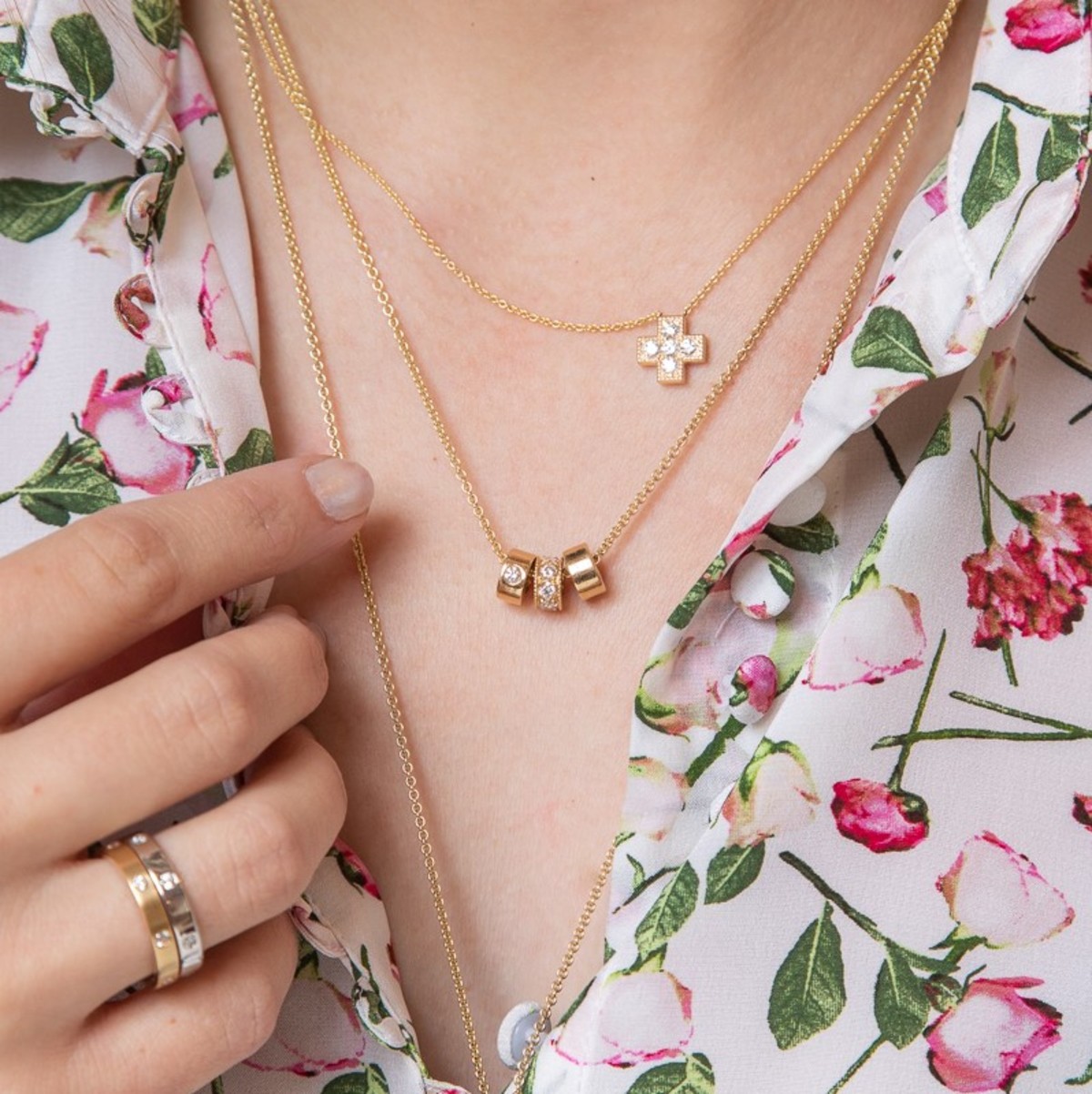 The Diamond Les Points Bead features 3 diamonds set in 14K yellow gold. Wear it on a chain for a simple pendant or add more beads to personalize your look. Keep adding beads to tell your story – kids’ birthstones, special engravings, and more.