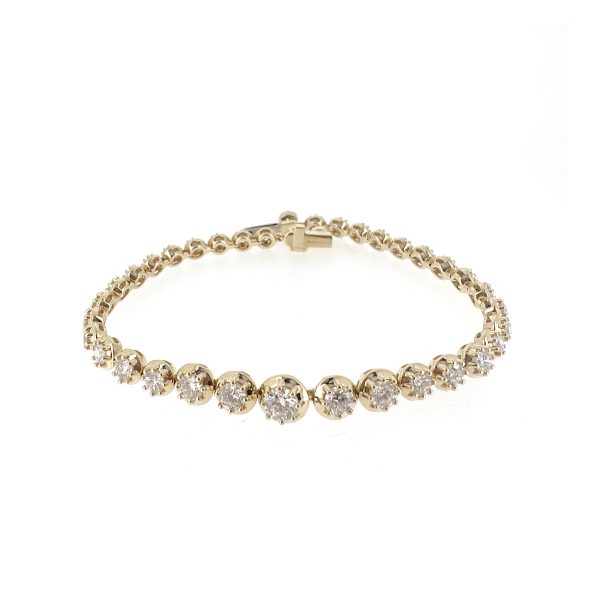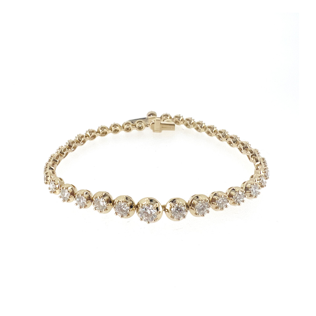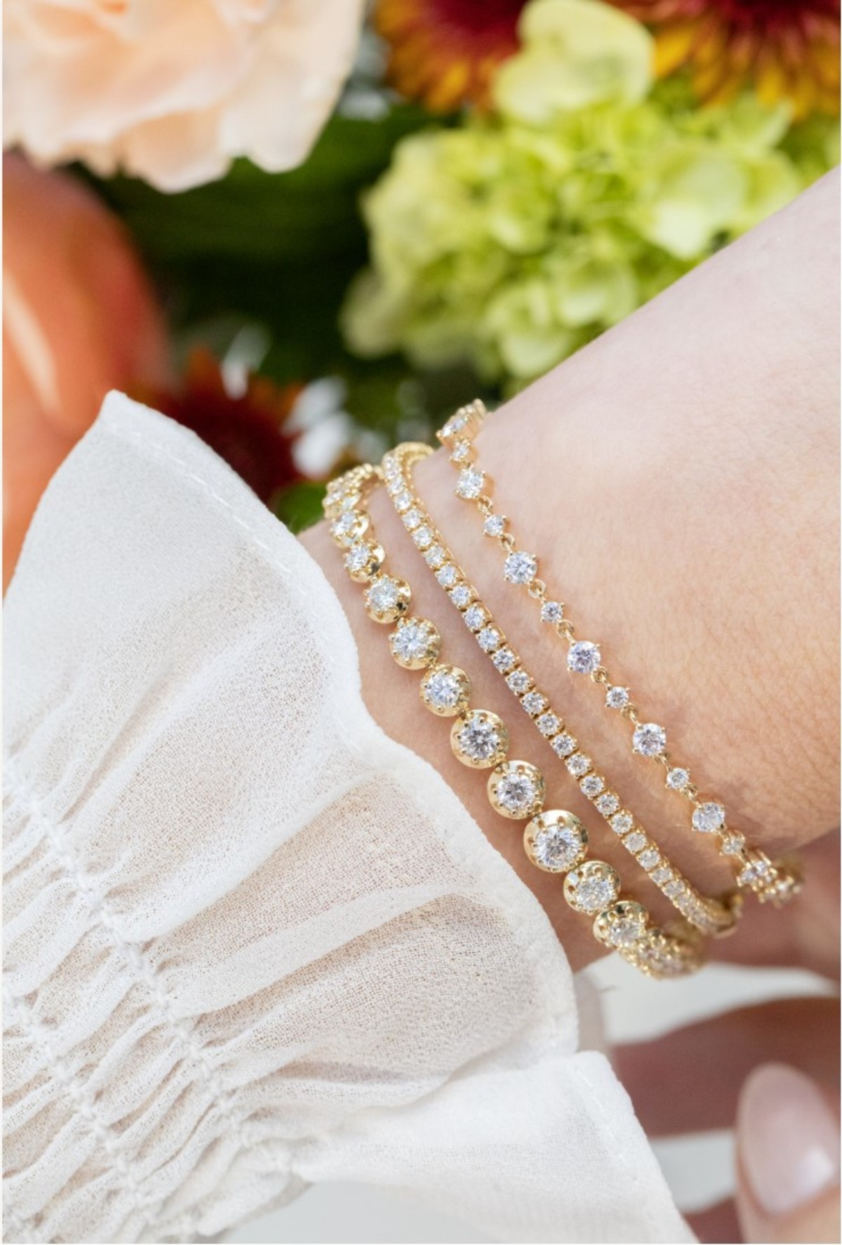 Our New Illusion Settings Introduce a Bigger Look to a Sparkly Diamond. This Every Day Tennis Bracelet Features Various Sized Diamonds Surrounded By a Metal “Halo” Look.
