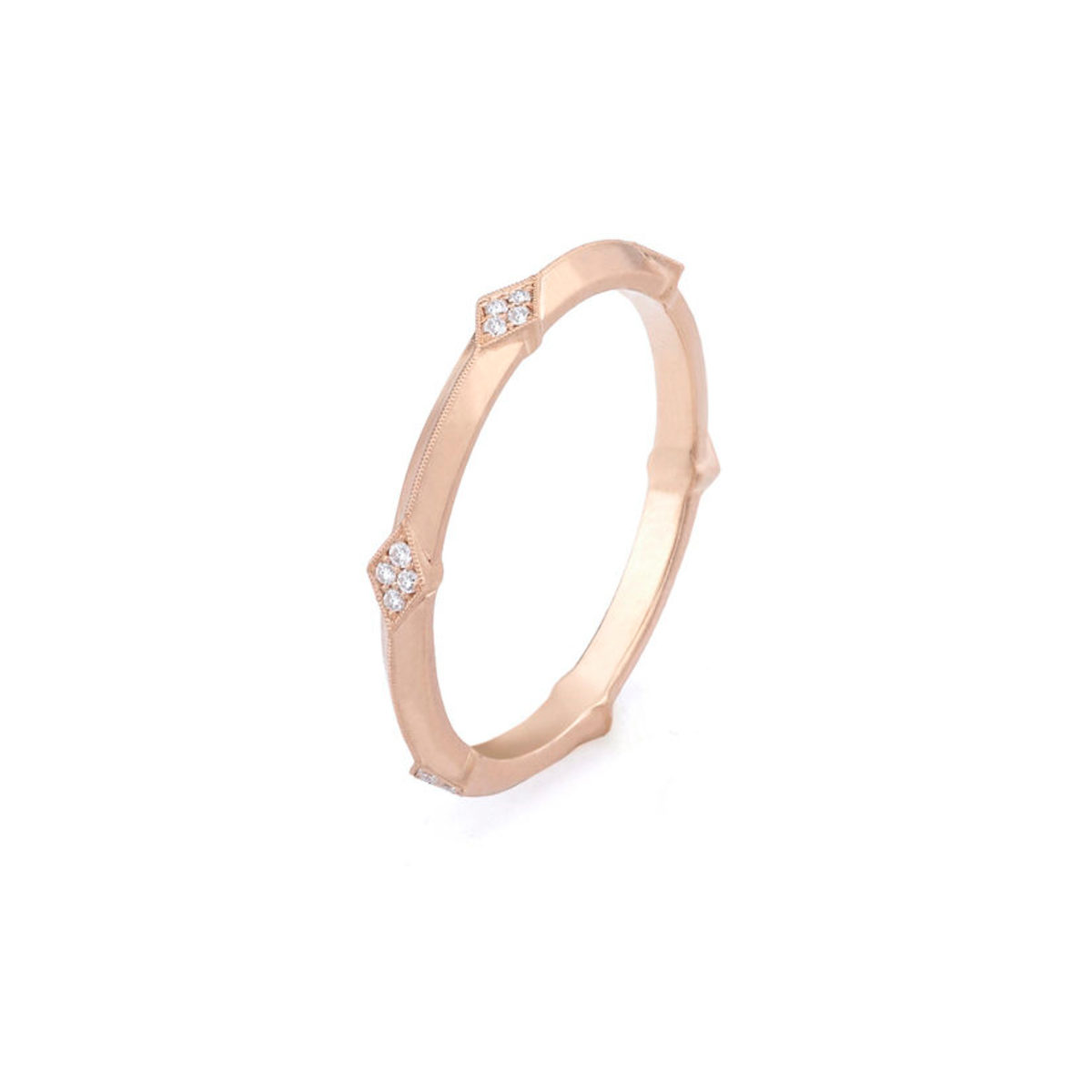 Handcrafted ladies band set with diamonds in delicate diamond-shaped detail, 2.0mm width