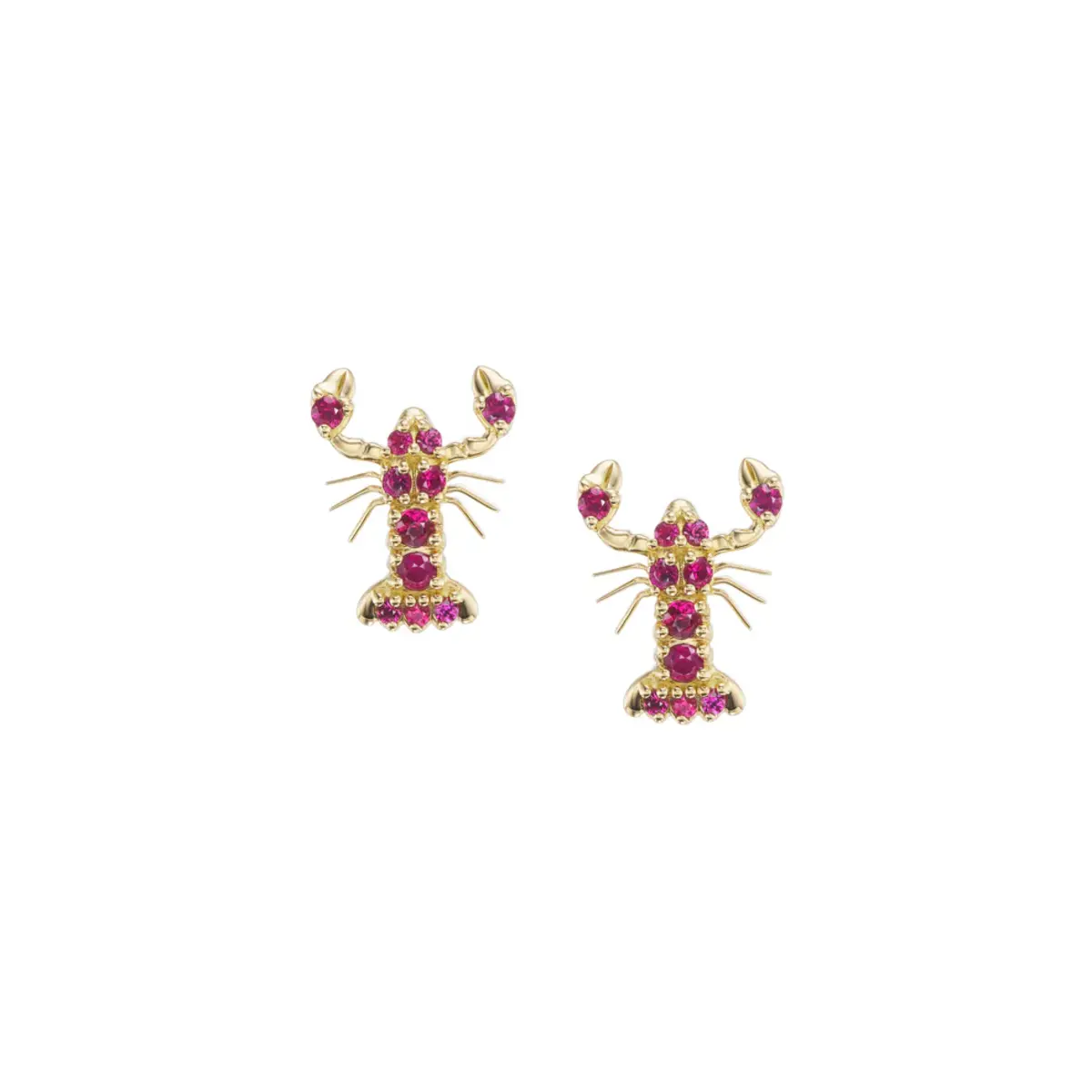 Add a touch of coastal charm with a dash of glamour. These Ruby Lobster Studs feature meticulously detailed lobster silhouettes set with vibrant ruby stones that catch the light beautifully. Crafted for those who love playful luxury, these studs bring personality to any jewelry collection—perfect for everyday wear or a chic seaside moment