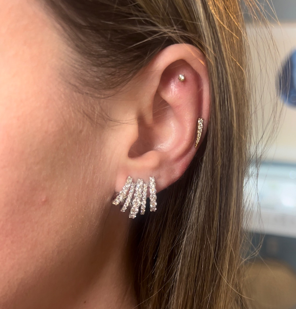 These five row diamond huggies offer everyday luxury, featuring a timeless huggie silhouette and brilliant diamond sparkle! Wear these as an alternative to your diamond studs.