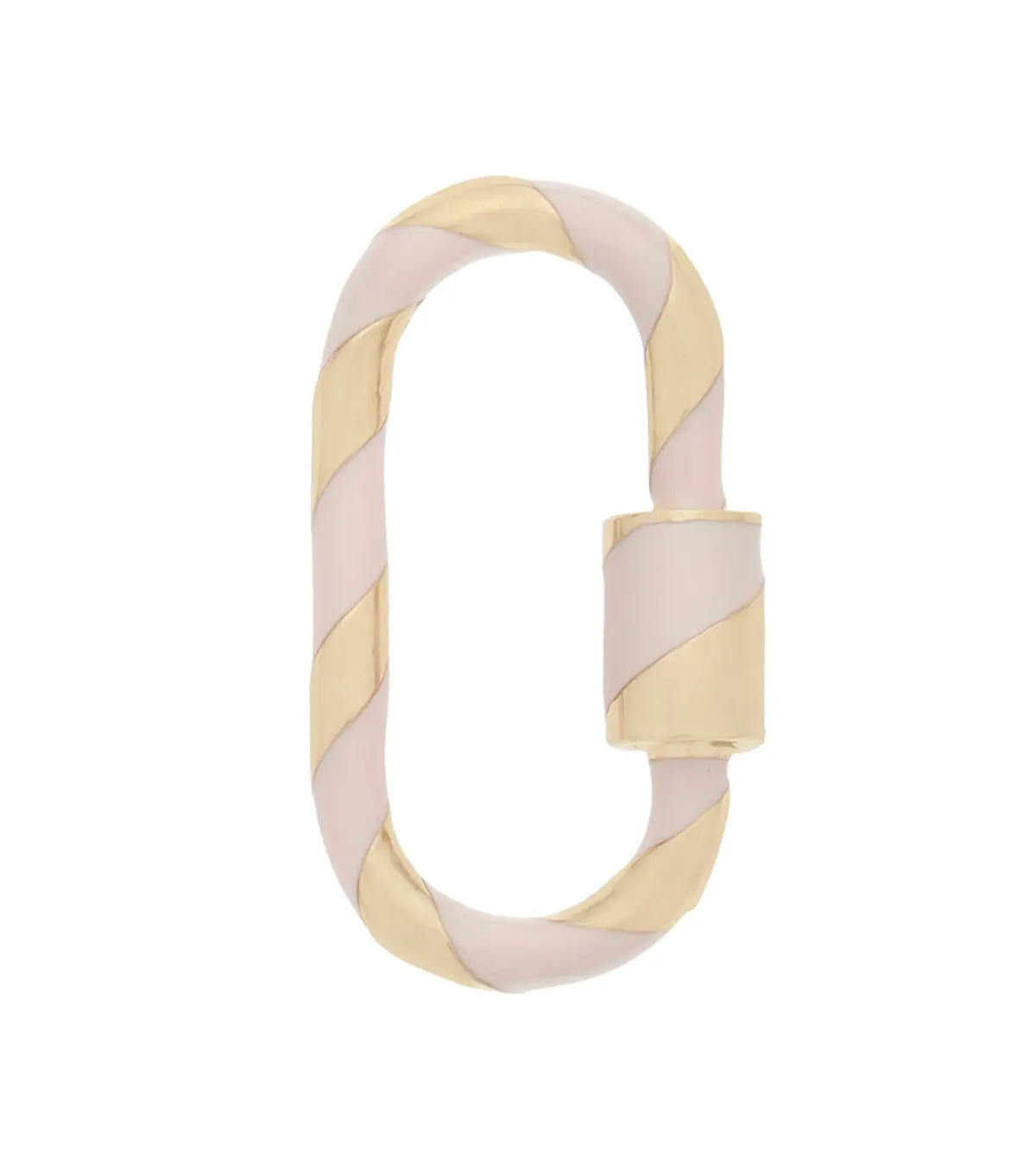 Soft and sophisticated, the Medium Lock with Blush Enamel from M. Flynn adds a feminine touch to your everyday jewelry stack. Crafted in solid 14K yellow gold and coated with a delicate blush pink enamel, this versatile lock is perfect as a clasp, connector, or charm holder. Its warm, romantic hue brings subtle elegance and personalization to any chain or bracelet. A beautiful balance of function and style, designed for effortless layering and self-expression.