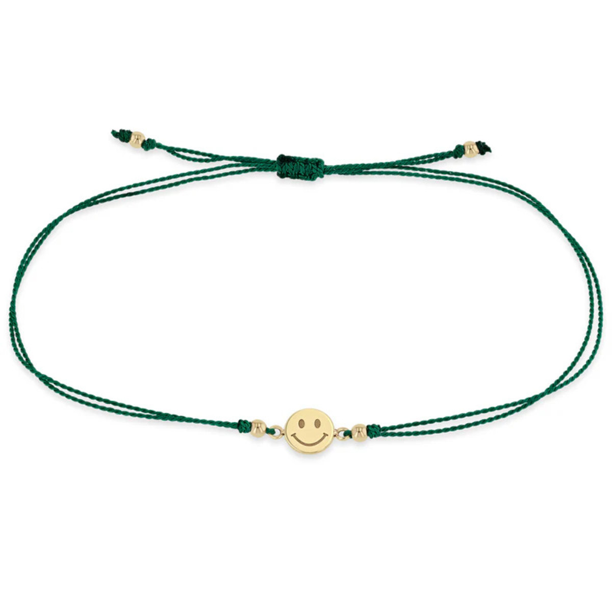Add a cheerful vibe to your jewelry collection with the Midi Bitty Smiley Cord Bracelet in vibrant green. Featuring a playful smiley charm on an adjustable green cord, this bracelet brings a fun and lively touch to any outfit. Ideal for layering with other pieces or wearing alone, it’s the perfect accessory to express your unique personality and brighten your day.