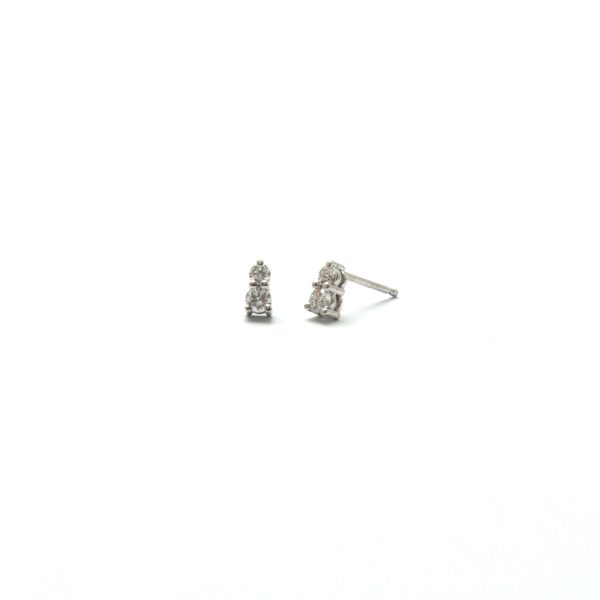 Delicate Double Stone Earrings in Diamond and 14k Gold.