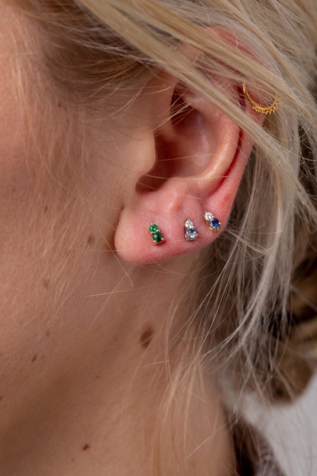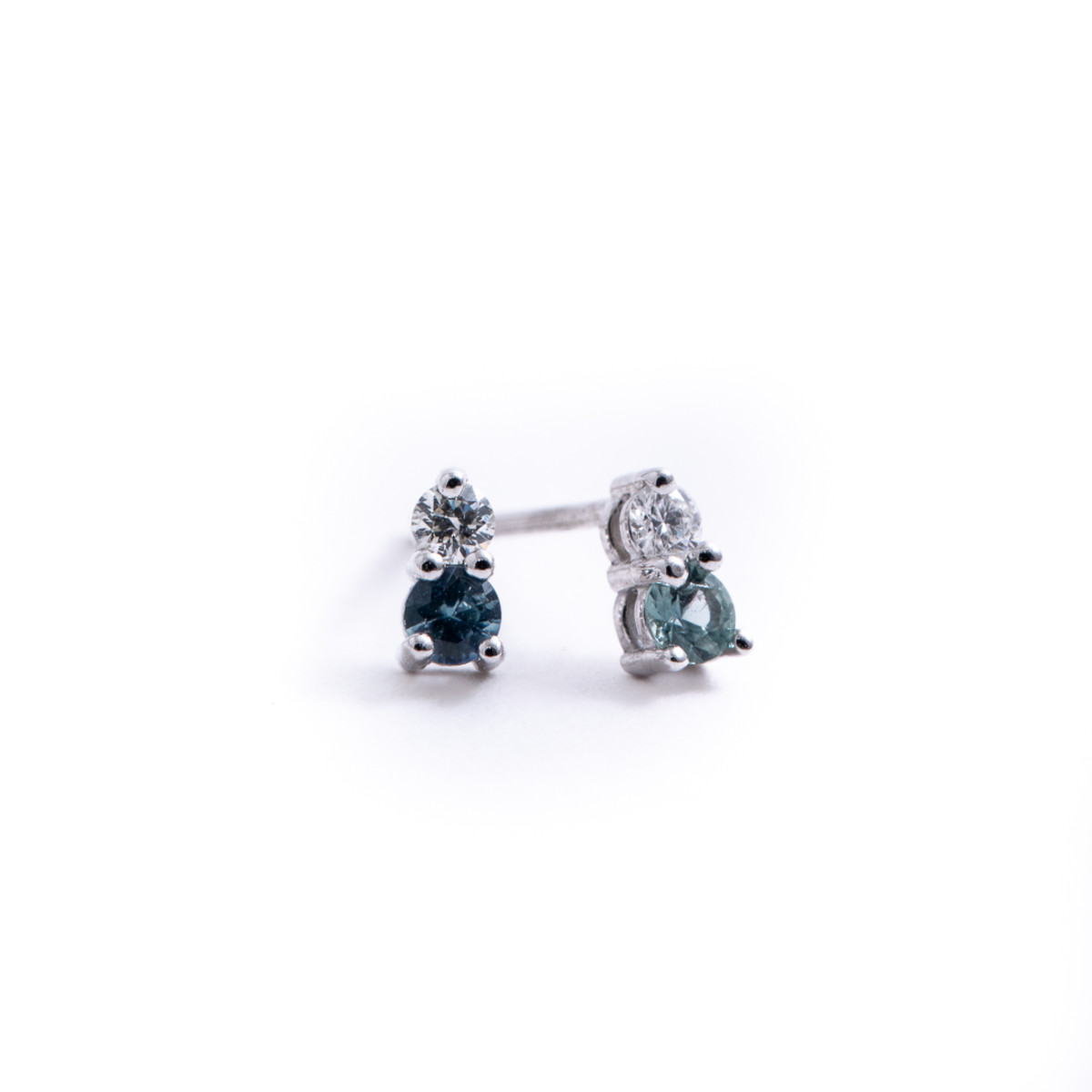 Mini Capella Studs in Montana Sapphire & Diamond in 14K White Gold