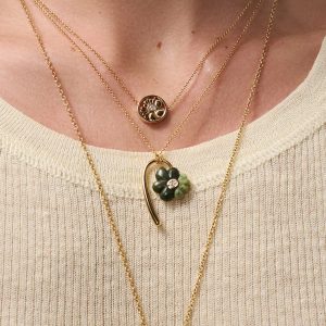 Hand cut Pink Opal inlay set in 14k yellow gold with 0.02ct white diamond.