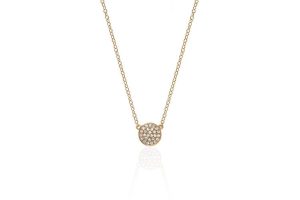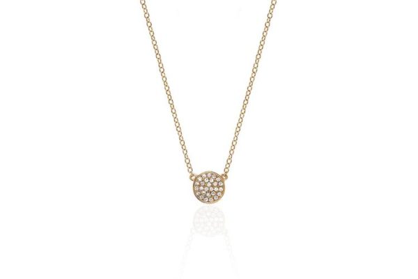 / Pave Diamond Disc Necklace in 14K Rose Gold
