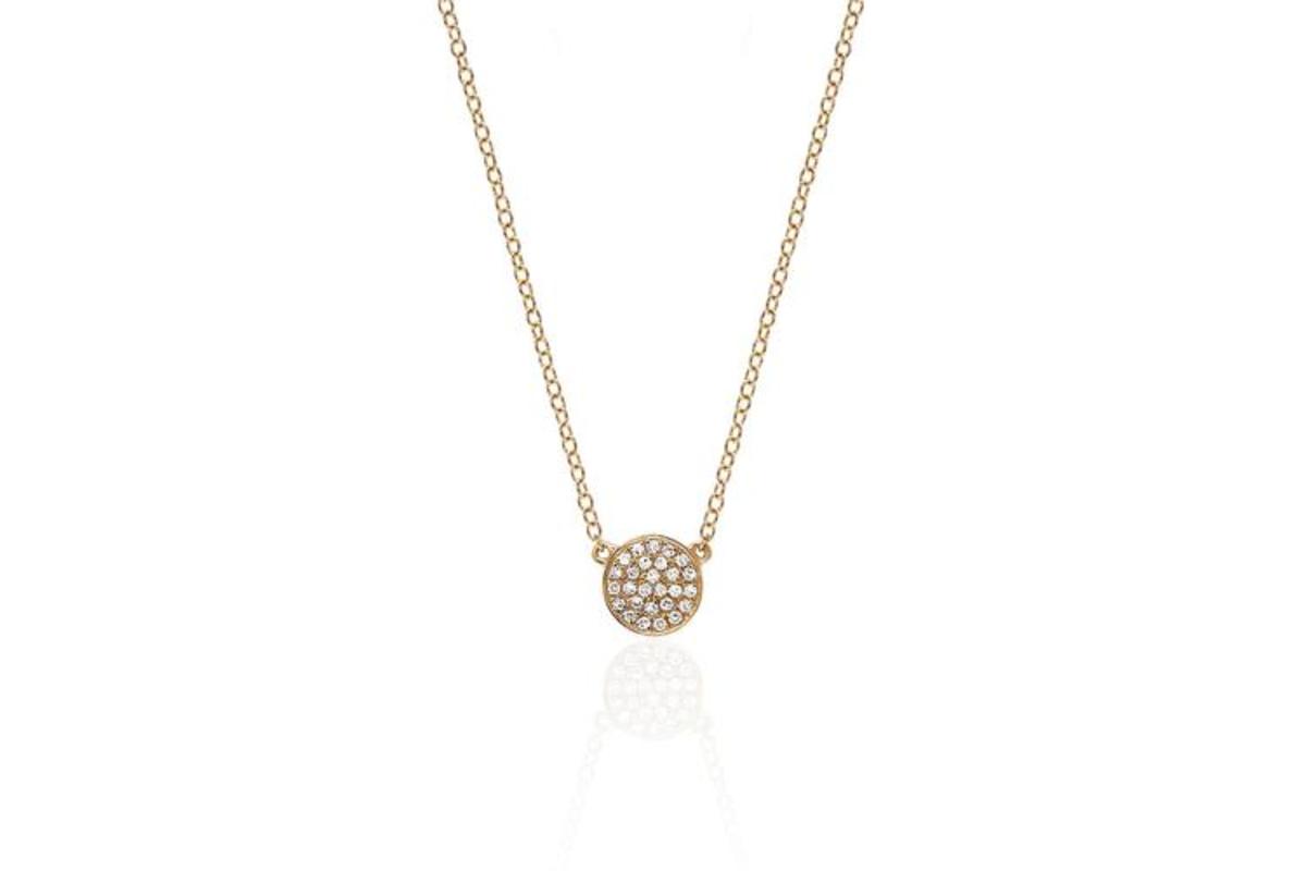 / Pave Diamond Disc Necklace in 14K Rose Gold