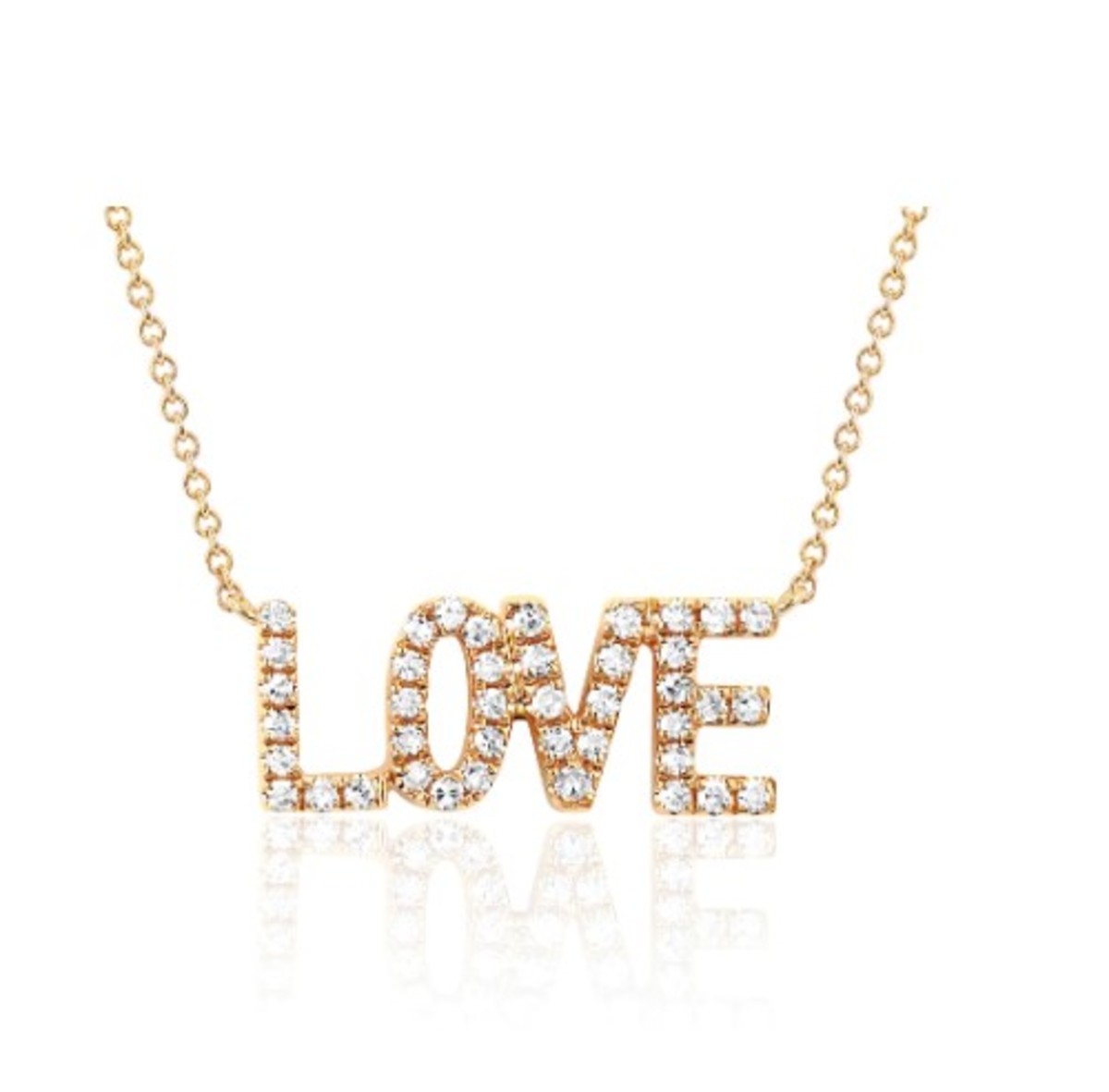 The mini diamond love necklace features 0.07 carats of diamond set in 14k gold.