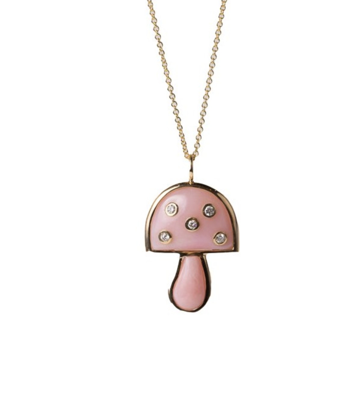 Mini Mushroom Pendant in Pink Opal with Diamonds