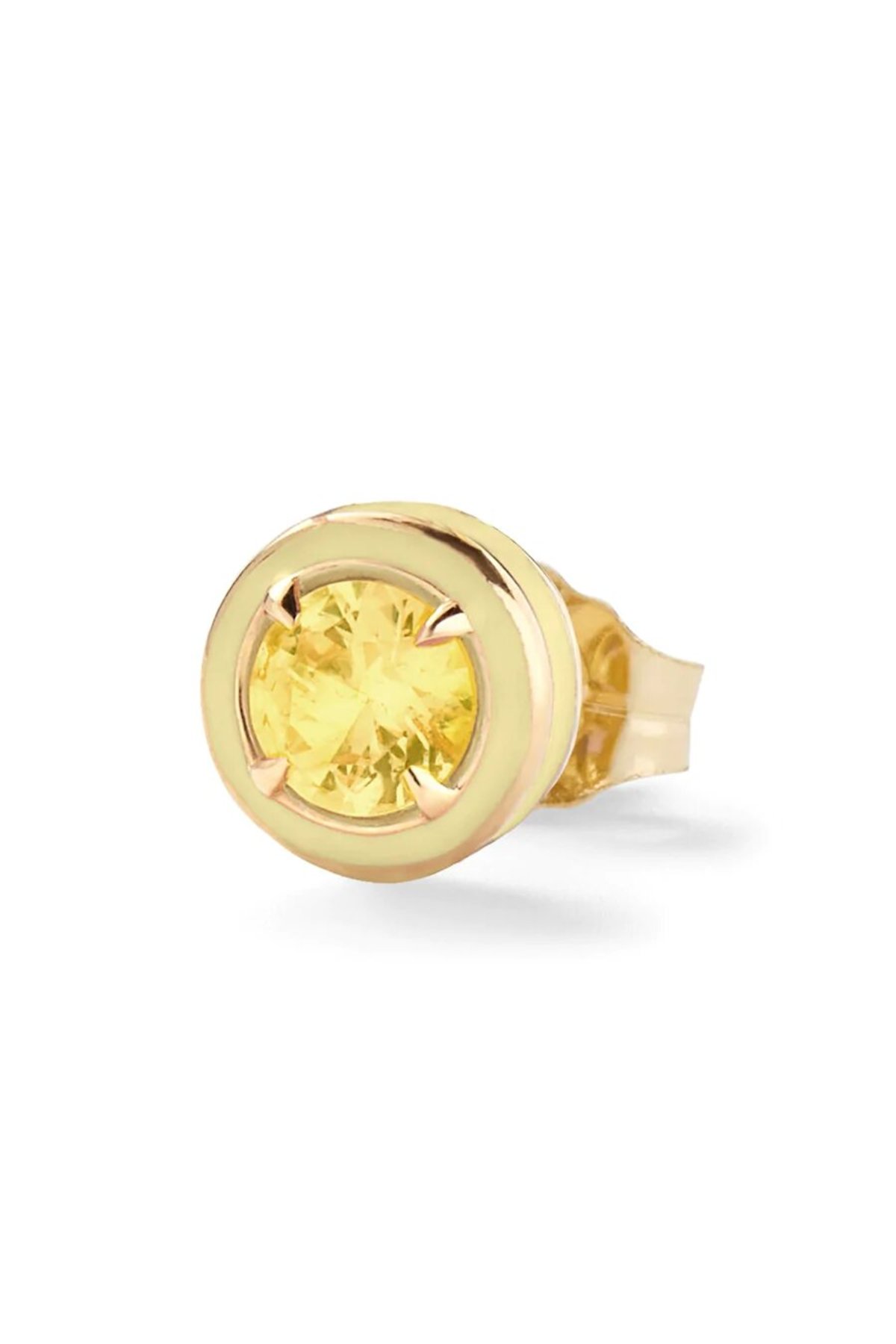 Add subtle sparkle and a touch of color to your ear with a round yellow citrine and yellow enamel border stud in 14k yellow gold.