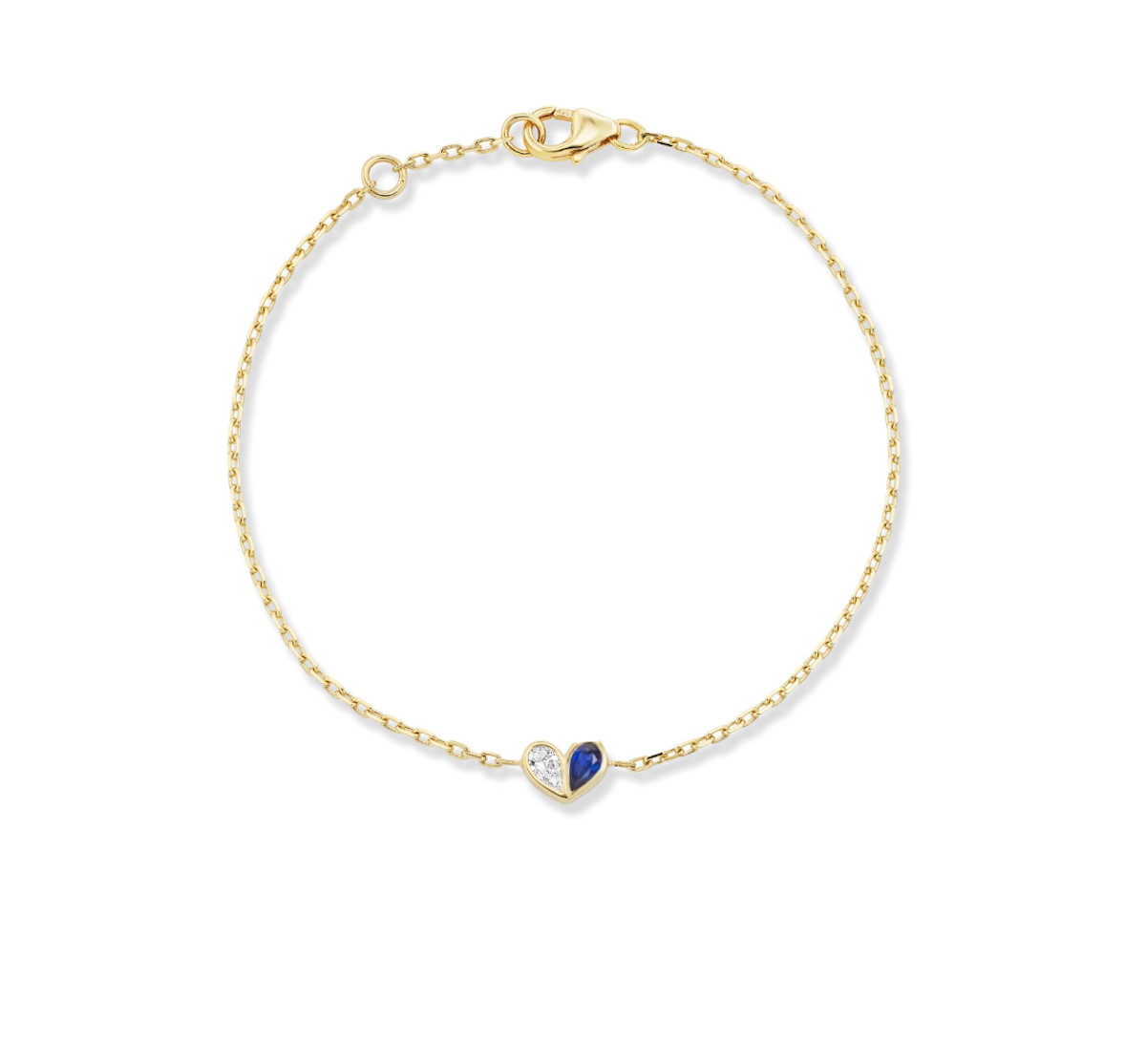 Crafted in 18K yellow gold, the Gemella Mini Sweetheart Bracelet adds a subtle pop of color and sparkle to any look. Featuring approximately 0.10ct of diamonds and 0.15ct of vibrant sapphire, this dainty piece is perfect for stacking or wearing solo. A charming blend of elegance and whimsy, it’s a must-have for anyone who loves delicate, meaningful jewelry.