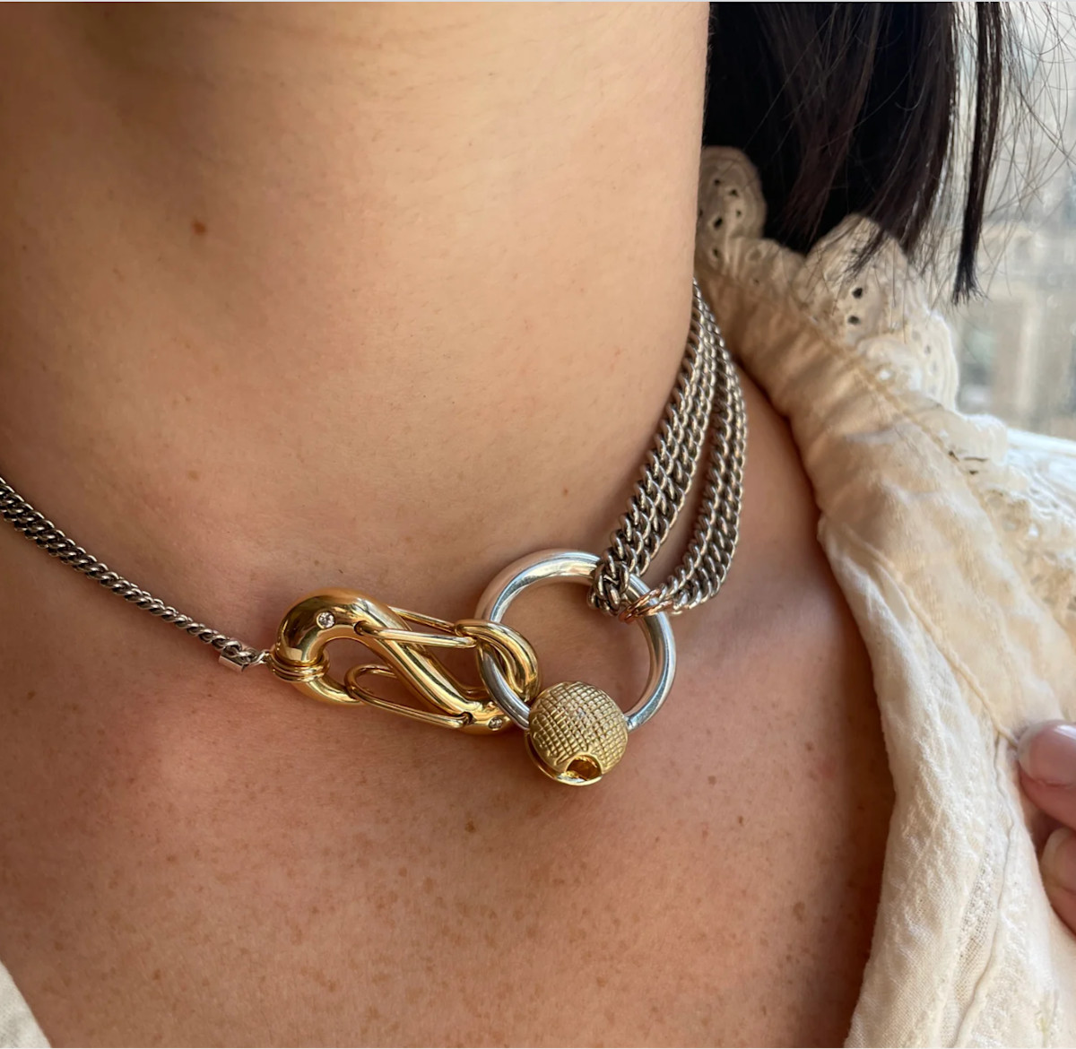 The Musgrave Lock in Silver with Gold blends modern elegance with timeless versatility. Crafted from polished sterling silver and accented with rich gold detailing, this lock offers a sleek, two-tone design that stands out. Perfect as a statement clasp, pendant, or charm, it seamlessly complements chains, bracelets, and other jewelry, allowing you to create a personalized, layered look.