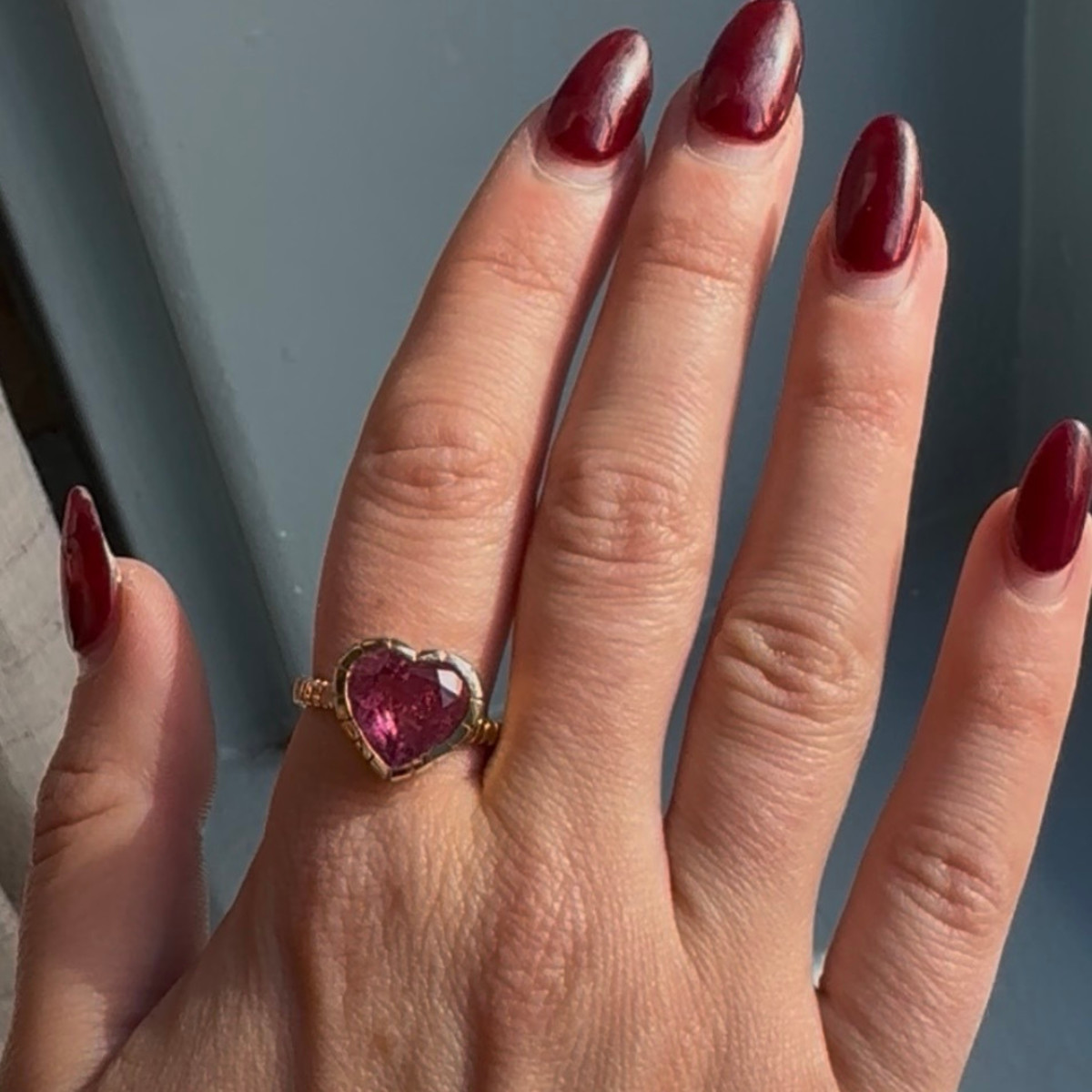 OOAK Pink Tourmaline 5.47 Heart shaped Ring 14K
