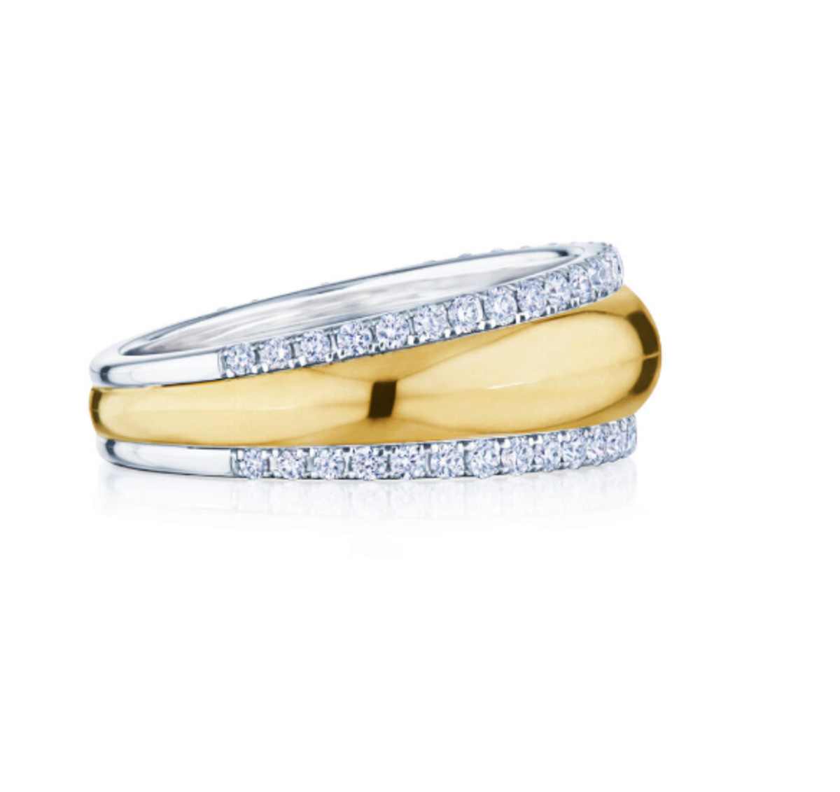 Orbit Domed Ring with Diamonds in 18k Yellow and White Gold