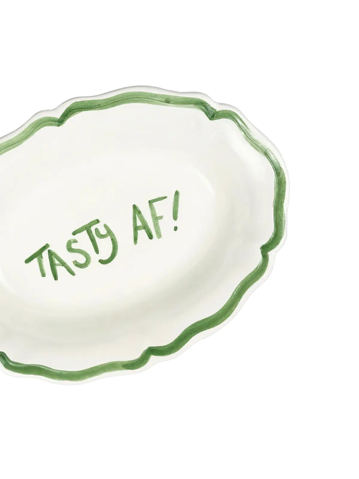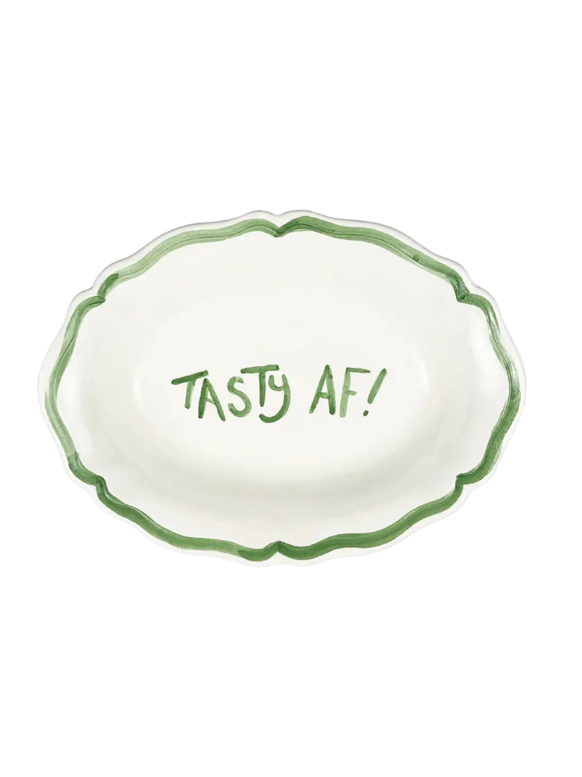 Add a bold statement to your table with the Oval Serving Dish “Tasty Af.” Perfect for serving appetizers, sides, or main courses, this dish combines functionality with playful sophistication. Crafted from high-quality materials and featuring a sleek design, it’s ideal for entertaining or adding a modern edge to everyday dining. Whether you’re hosting a dinner party or looking for a unique gift, this serving dish brings style and personality to any occasion.