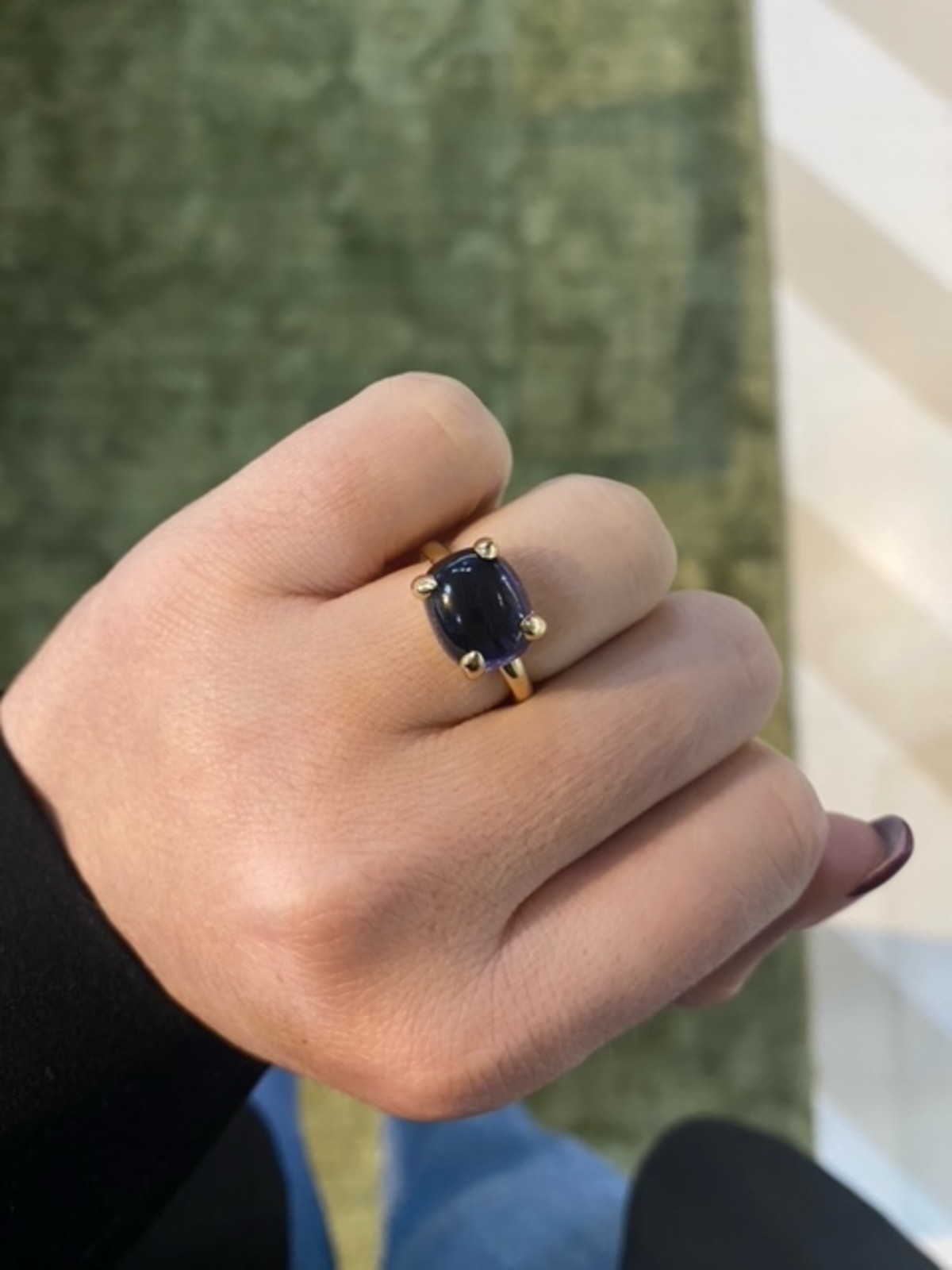 Oversized Cabochon Ring in Iolite in 14K Yellow Gold
