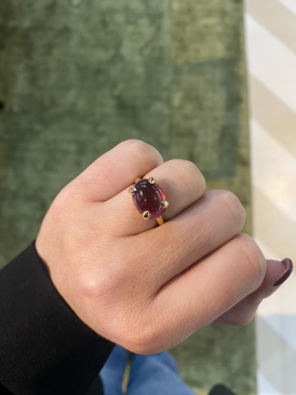 One-Of-A-Kind Oversized Tourmaline Cabochon Ring in 14K Yellow Gold