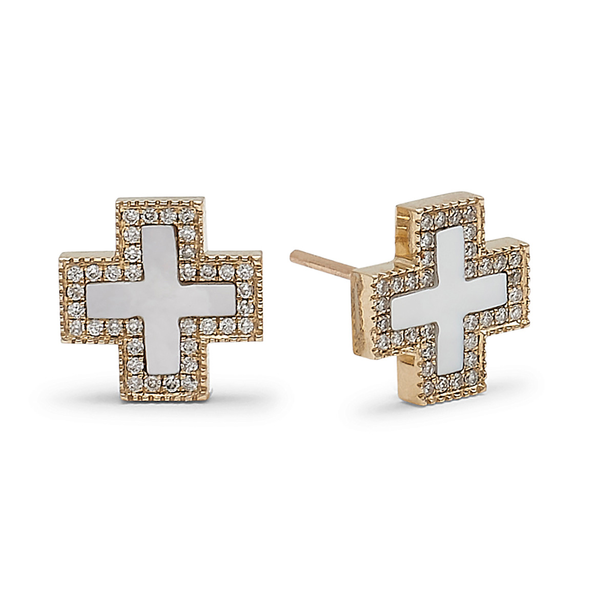 A twist on our best-selling Heirloom Stud Earrings, the Pave Mother of Pearl Inlay Heirloom Studs are a classic staple. These fun classics feature hand-cut mother of pearl surrounded by diamonds to fill the ear.