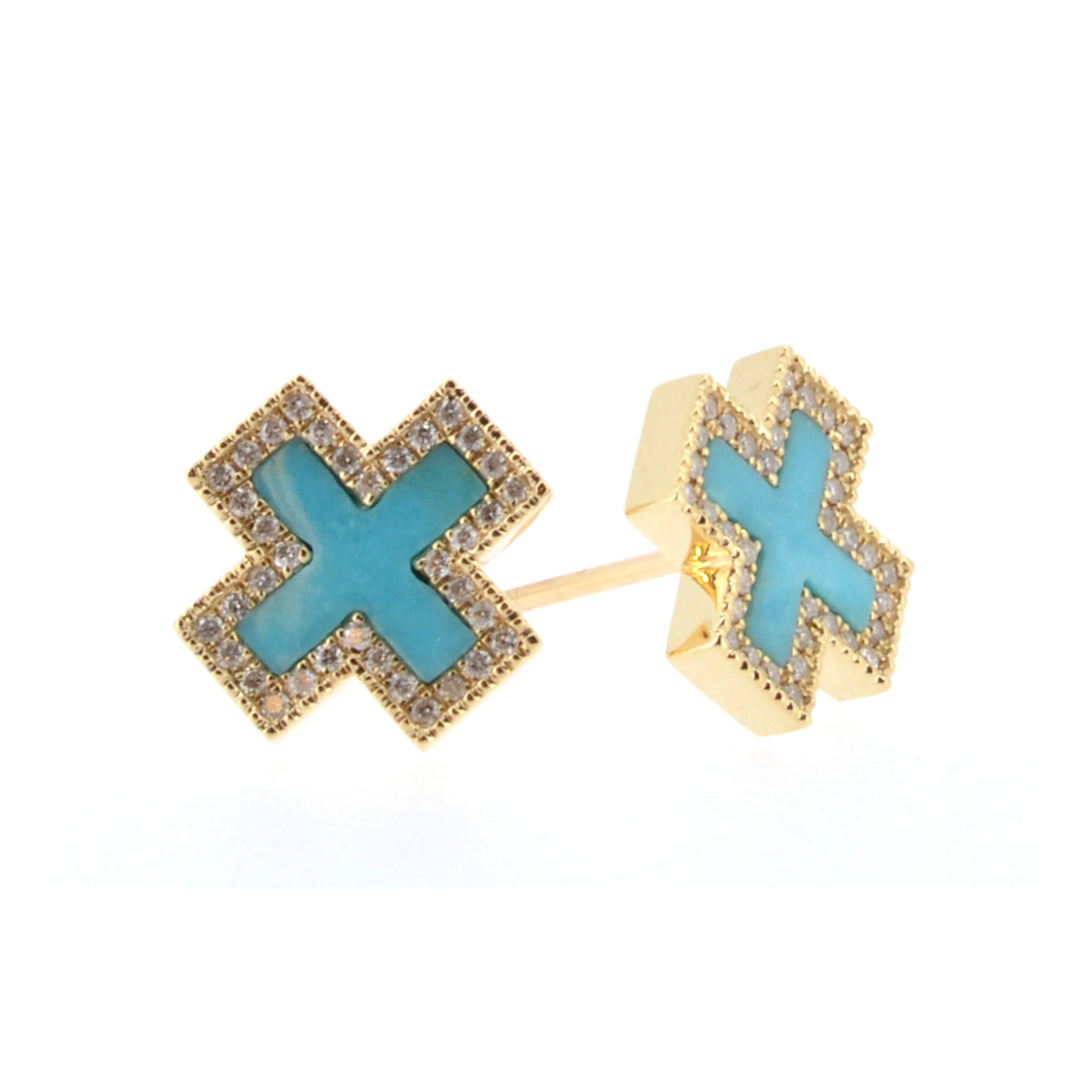 Pave Turquoise Inlay Heirloom Studs 14K Yellow Gold