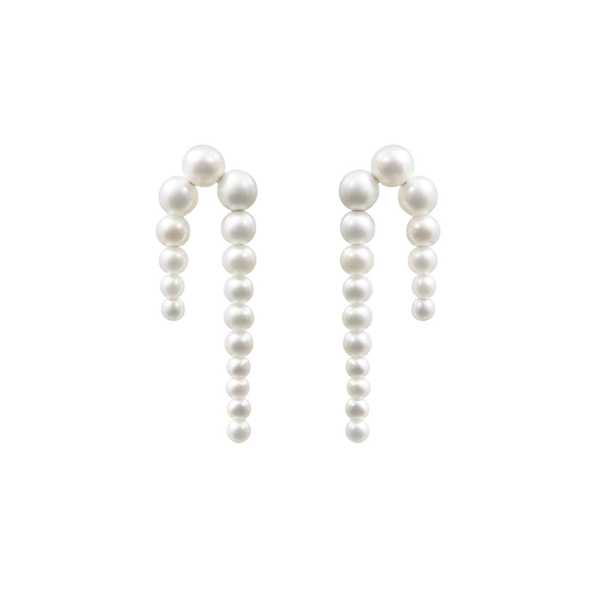 Curved Drooping Freshwater Pearl Earrings in 14K Yellow Gold to Fill The Ear
