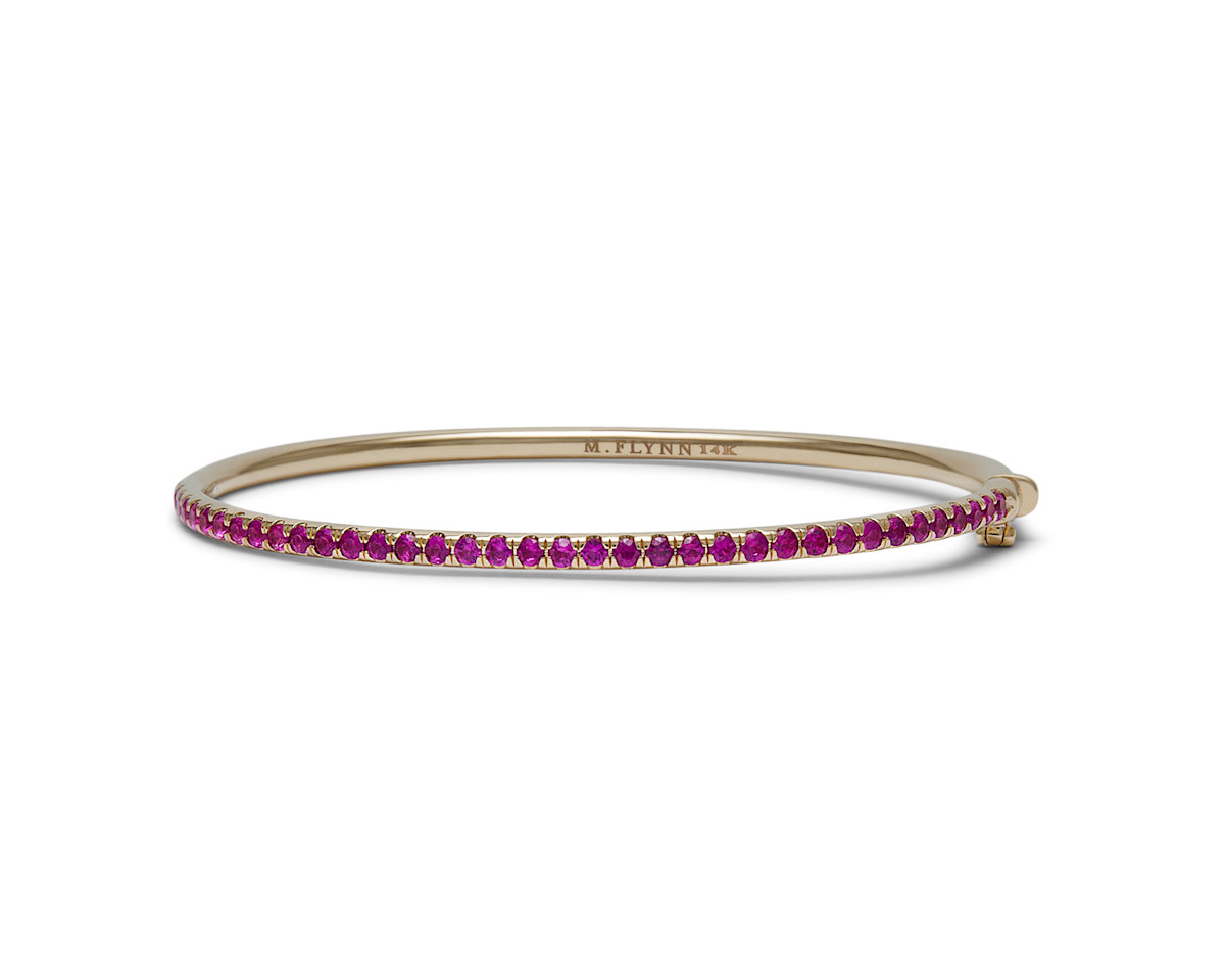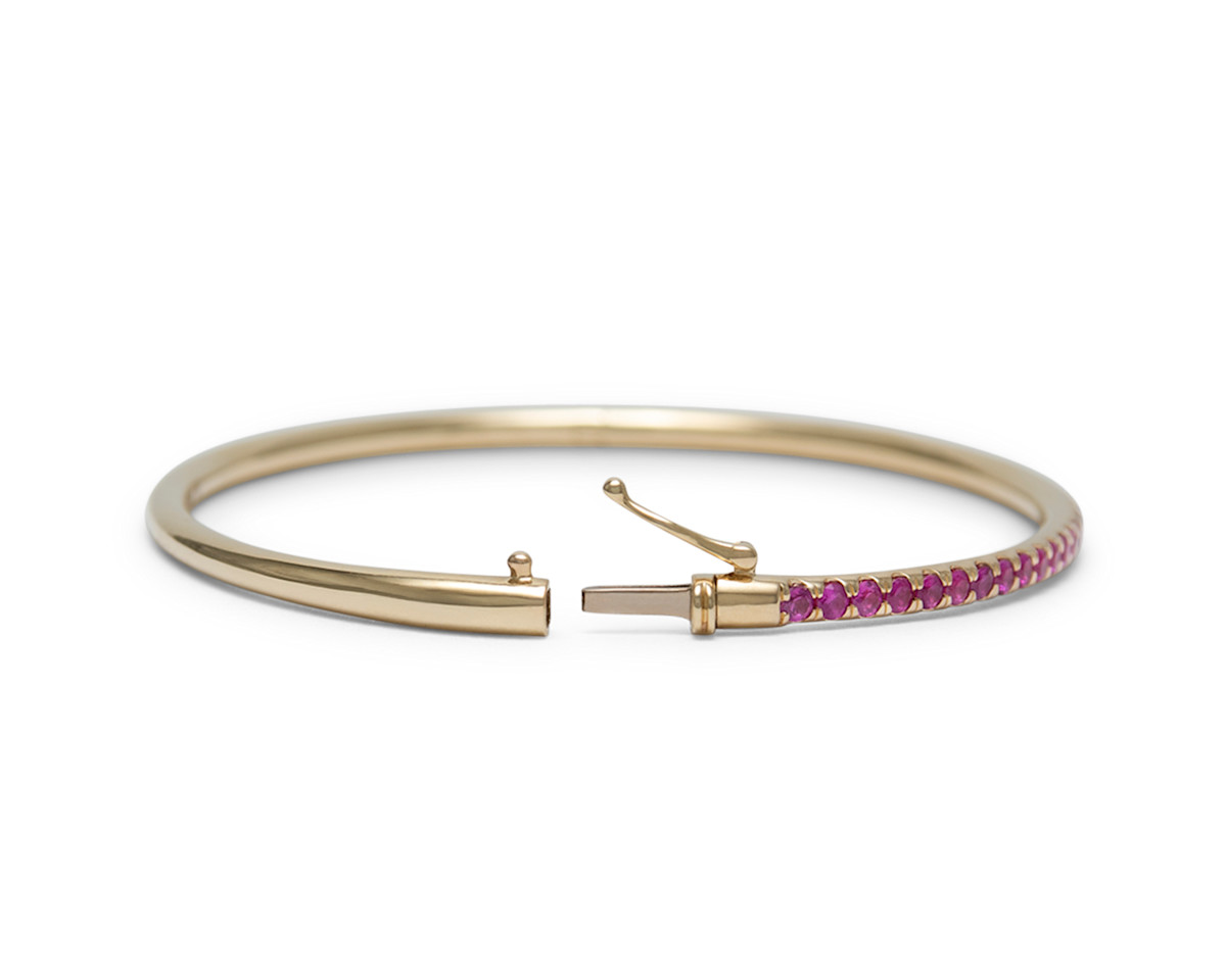 14K yellow gold shared prong bangle with pink sapphires, 1.0tcw