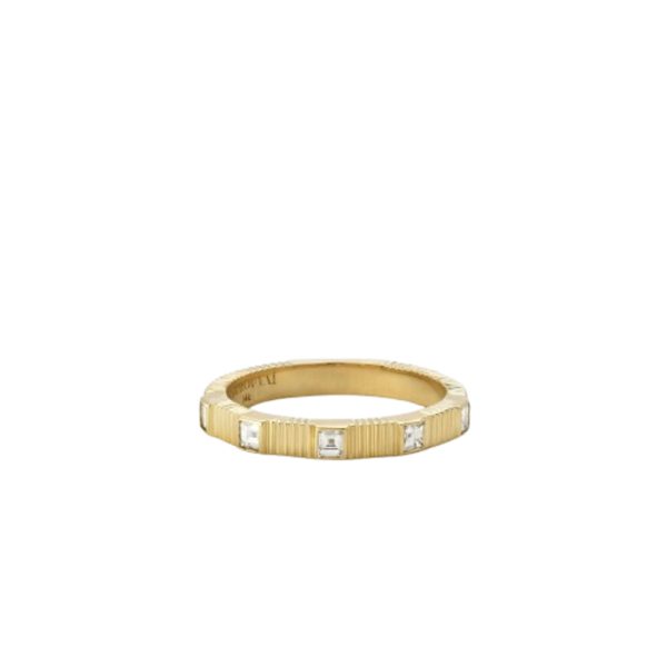 Elegant and timeless, the Pleated 5-Stone Band from M. Flynn features five brilliant diamonds set in a unique pleated gold design. Crafted for sparkle and structure, this ring blends classic beauty with modern edge. Perfect as a wedding band, anniversary gift, or stacking piece, this diamond band in size 6 adds effortless sophistication to any jewelry collection.