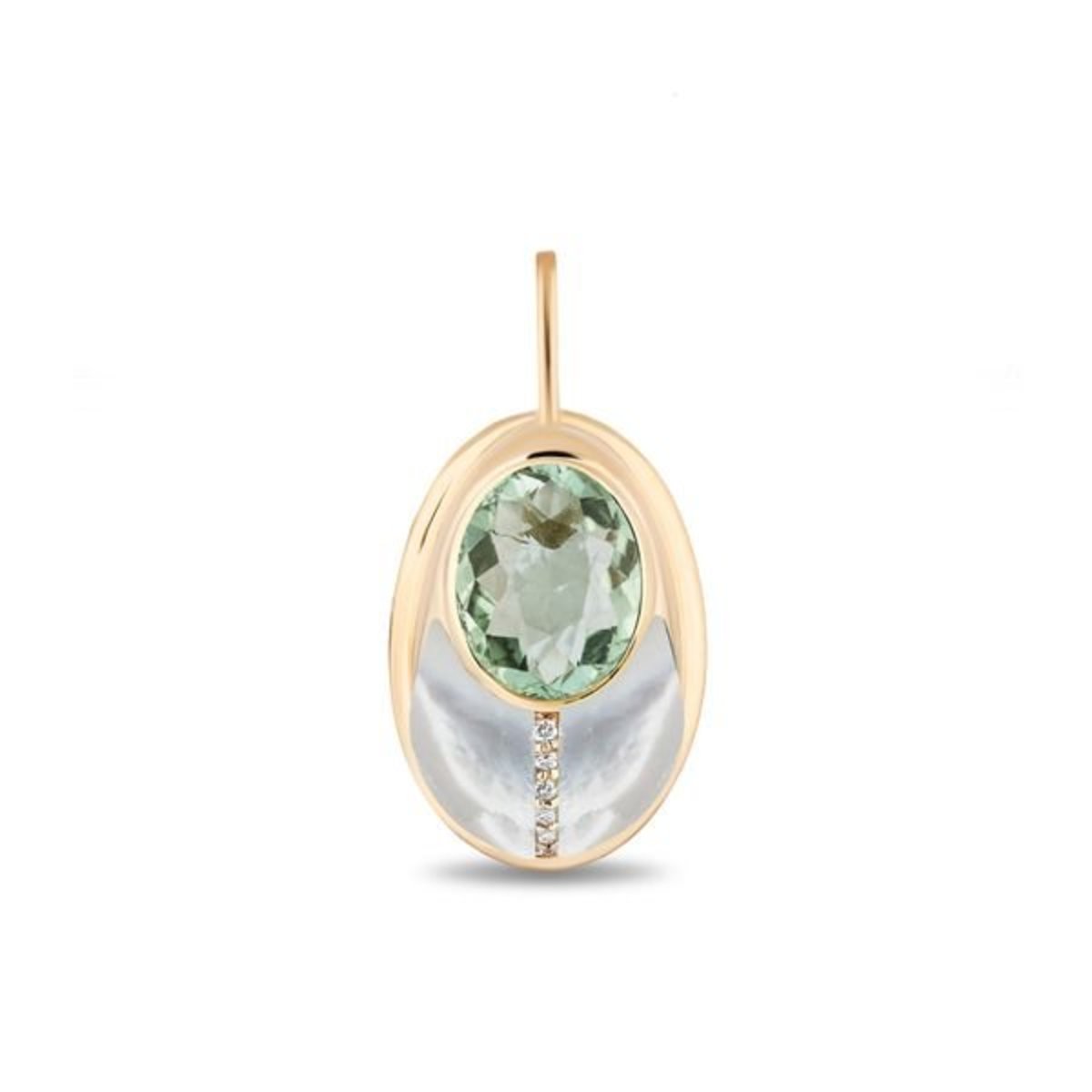 Praisolite and Mother of Pearl Love Bug Pendant in 14K Yellow Gold