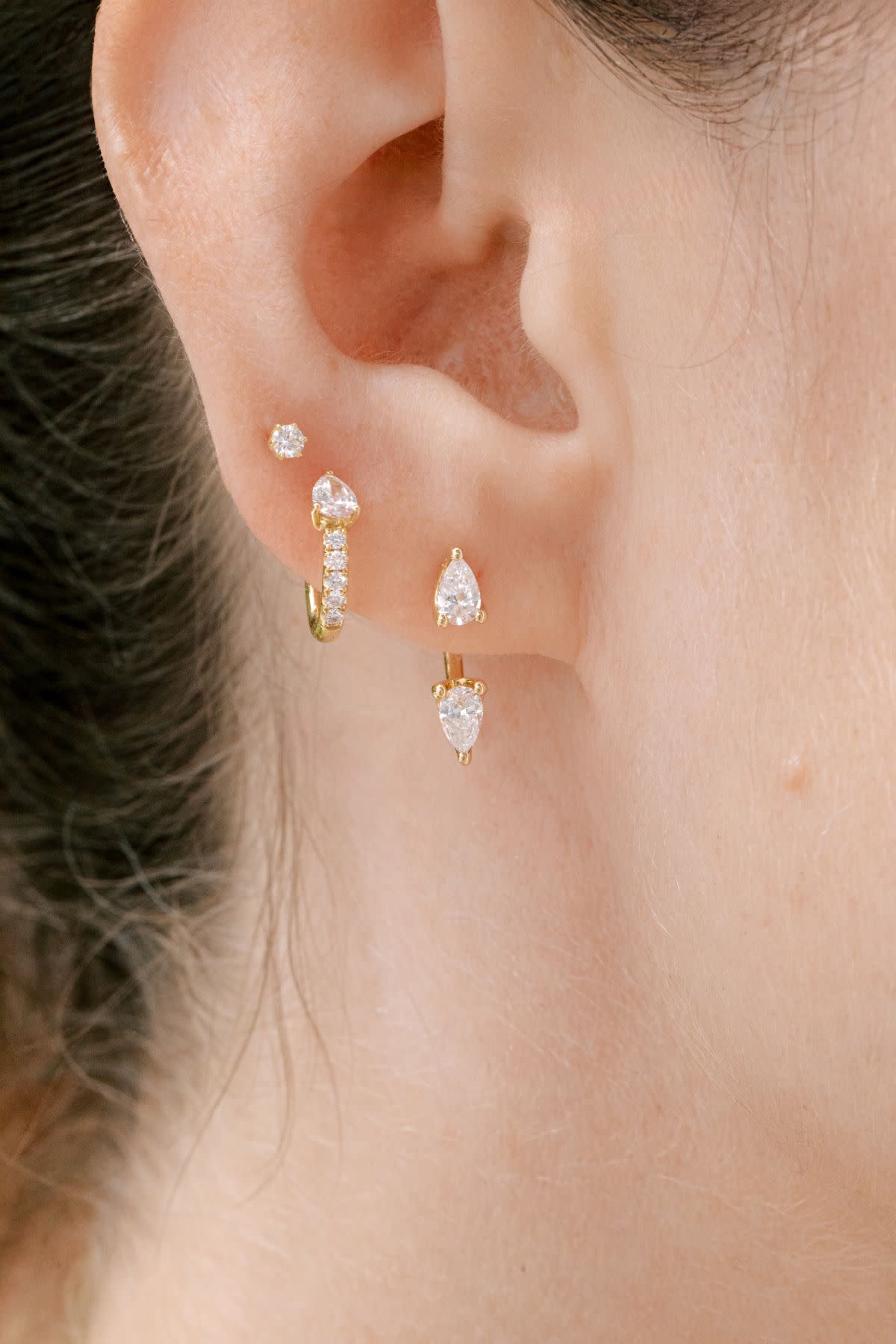 The Bobbi Pear Diamond Huggies by Anita Ko are the perfect everyday diamond huggie, but elevated! Featuring the classic huggie silhouette with beautiful pear diamonds and pave diamonds down the hoop. Huggies are a great alternative to your diamond studs, we love how comfortable they are!