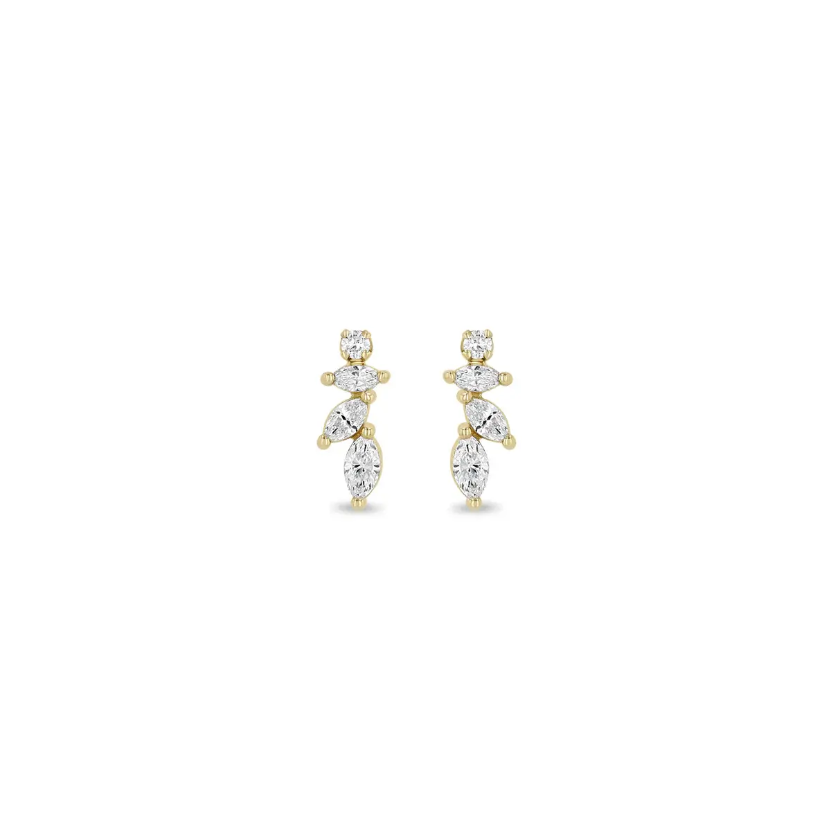 Prong Set Marquise and Round Diamond Fan Stud Earring in 14K Yellow