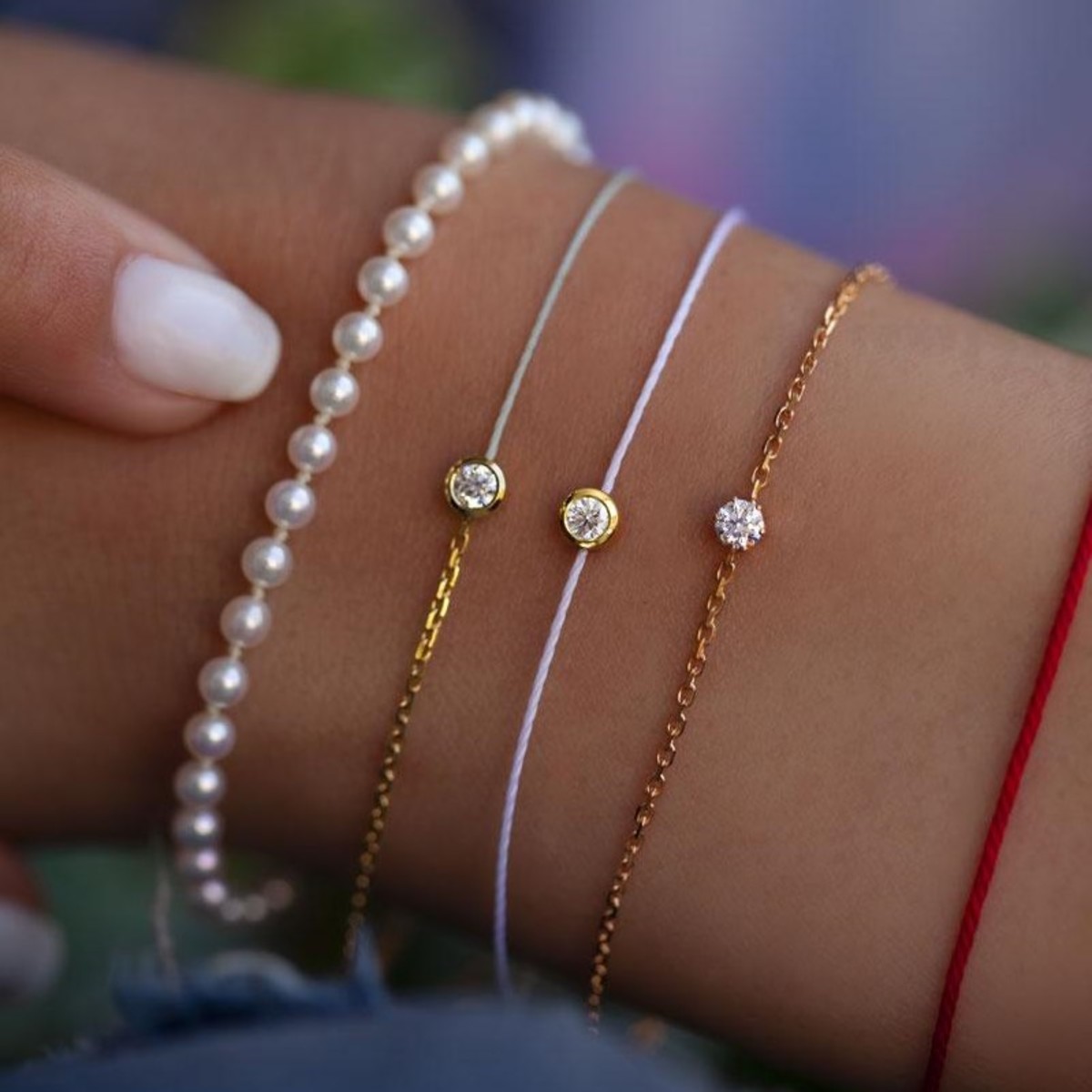 Made in Paris, the diamond on a string bracelet is a classic RedLine design. A 0.1ct diamond set in an18k yellow gold bezel that represents the contrast between the eternal glow of the diamond and the timeless radiance of the gold. The signature sheen string celebrates the infinite connection of an everlasting bond.