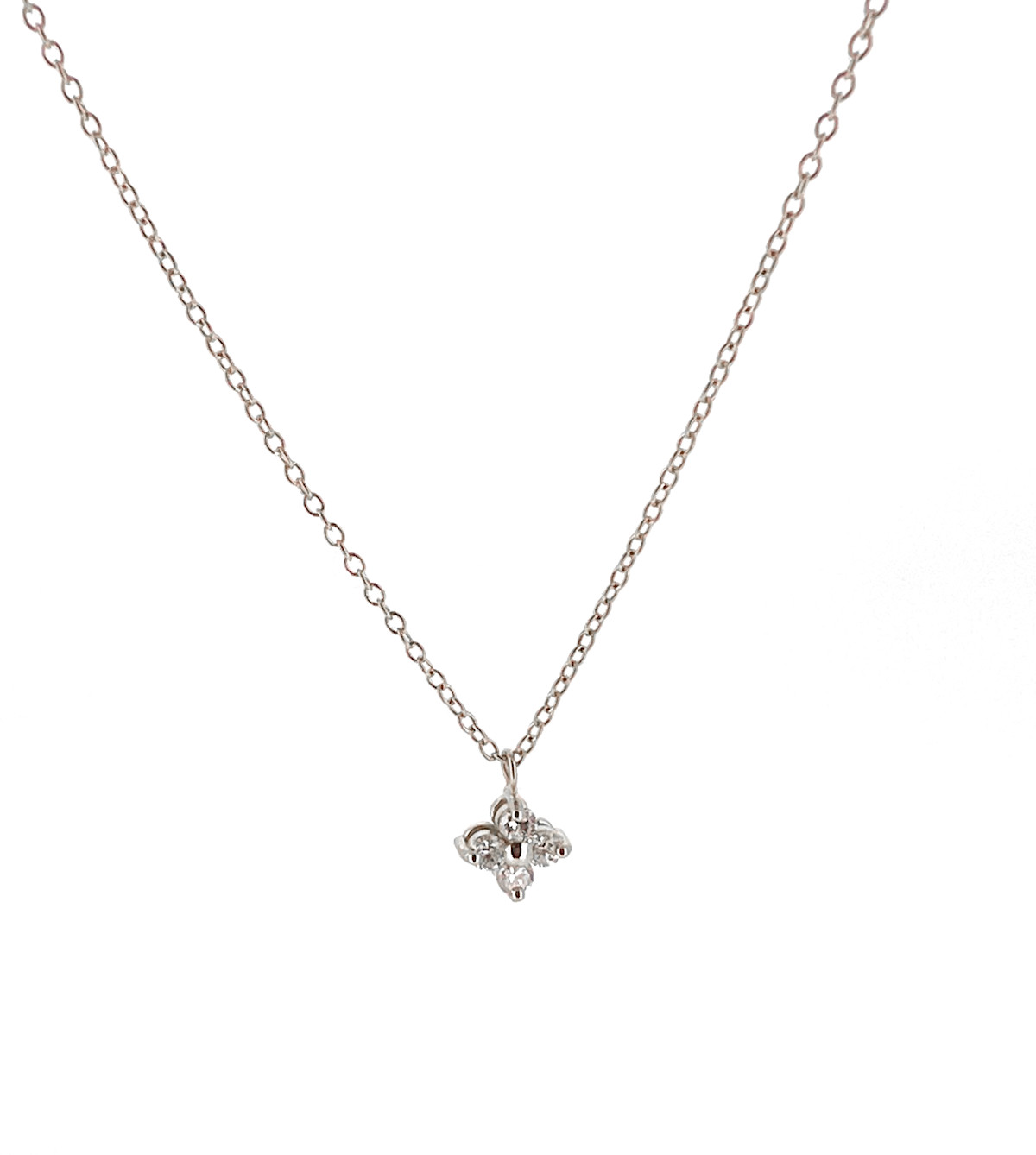 Four Prong Set Diamond Pendant on a Cable Chain in 14K White Gold