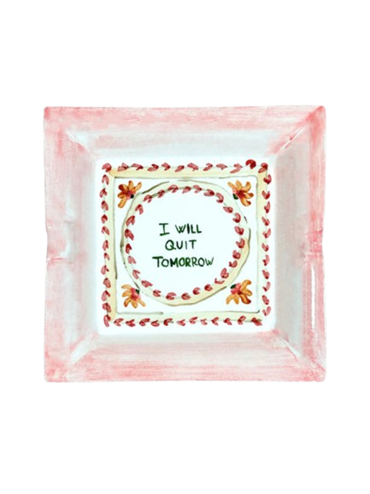 Bold, cheeky, and undeniably stylish—the “Quit Tomorrow” Ashtray brings attitude to your space. Crafted from ceramic with a sleek, high-gloss finish, this piece is as much a statement as it is functional. The playful “Quit Tomorrow” message adds a dose of humor and self-awareness, making it perfect for design lovers with a rebellious streak.