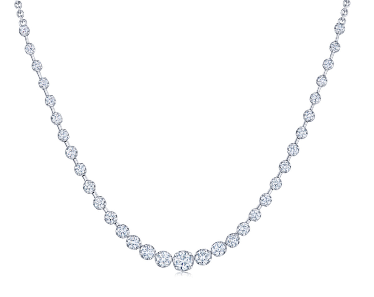 The Starry Night Riviera by Kwiat is a graduated diamond necklace featuring their signature tiara cut diamonds in classic white gold. Let this necklace take you from day to night!