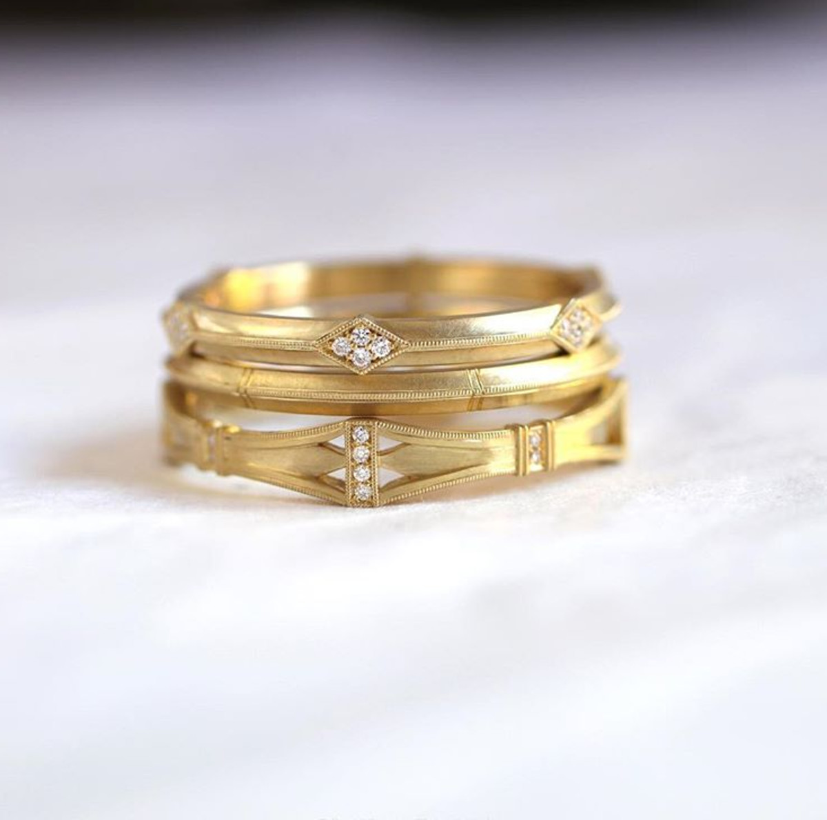 Rose is a very slim and delicate band that is perfect with an engagement ring or worn with a stack