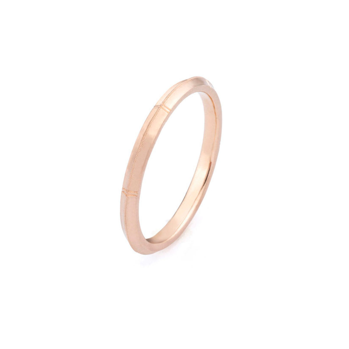 Handcrafted ladies knife edge band with hand engraving, milgrain detail, and Erika Winters Fine Jewelry signature brushed finish, 1.9mm width