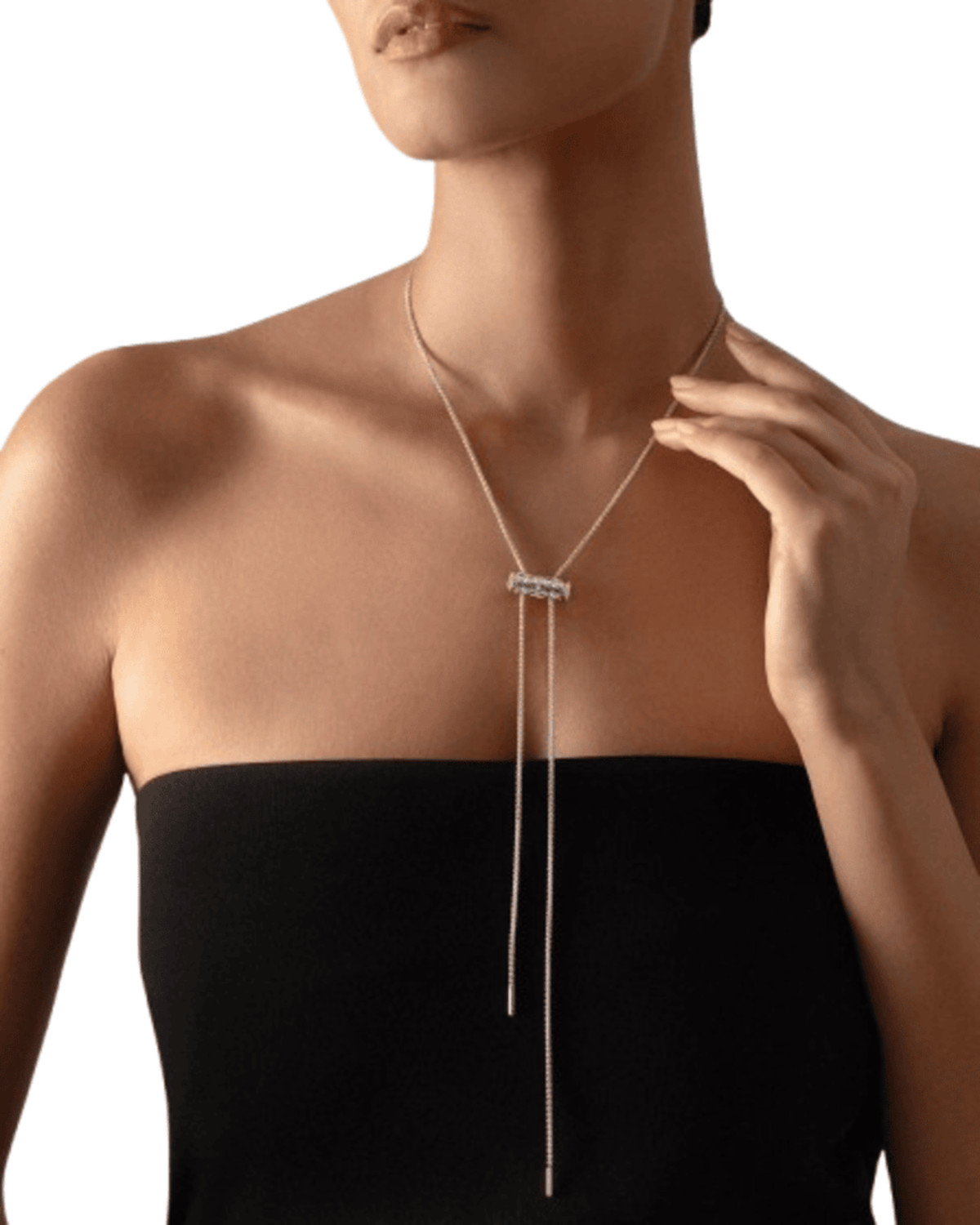 Elevate your jewelry collection with our Semi-Paved Latch Pendant in White Gold, a sleek blend of contemporary design and refined elegance. Crafted in luminous white gold, this unique pendant features a modern latch silhouette, partially paved with shimmering diamonds for a balanced touch of sparkle. Perfect for minimalist styling or layering with other pieces, it adds subtle sophistication to any look. A versatile accessory that transitions effortlessly from day to night.