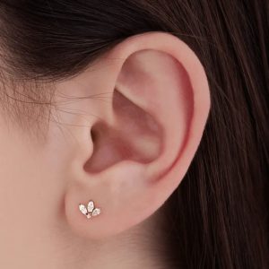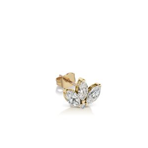 Three luminous marquise diamonds fan out from a smaller center diamond, resembling the petals of a lotus. A refined and dazzling earstud, the lotus is the perfect centerpiece for a Curated Ear®.