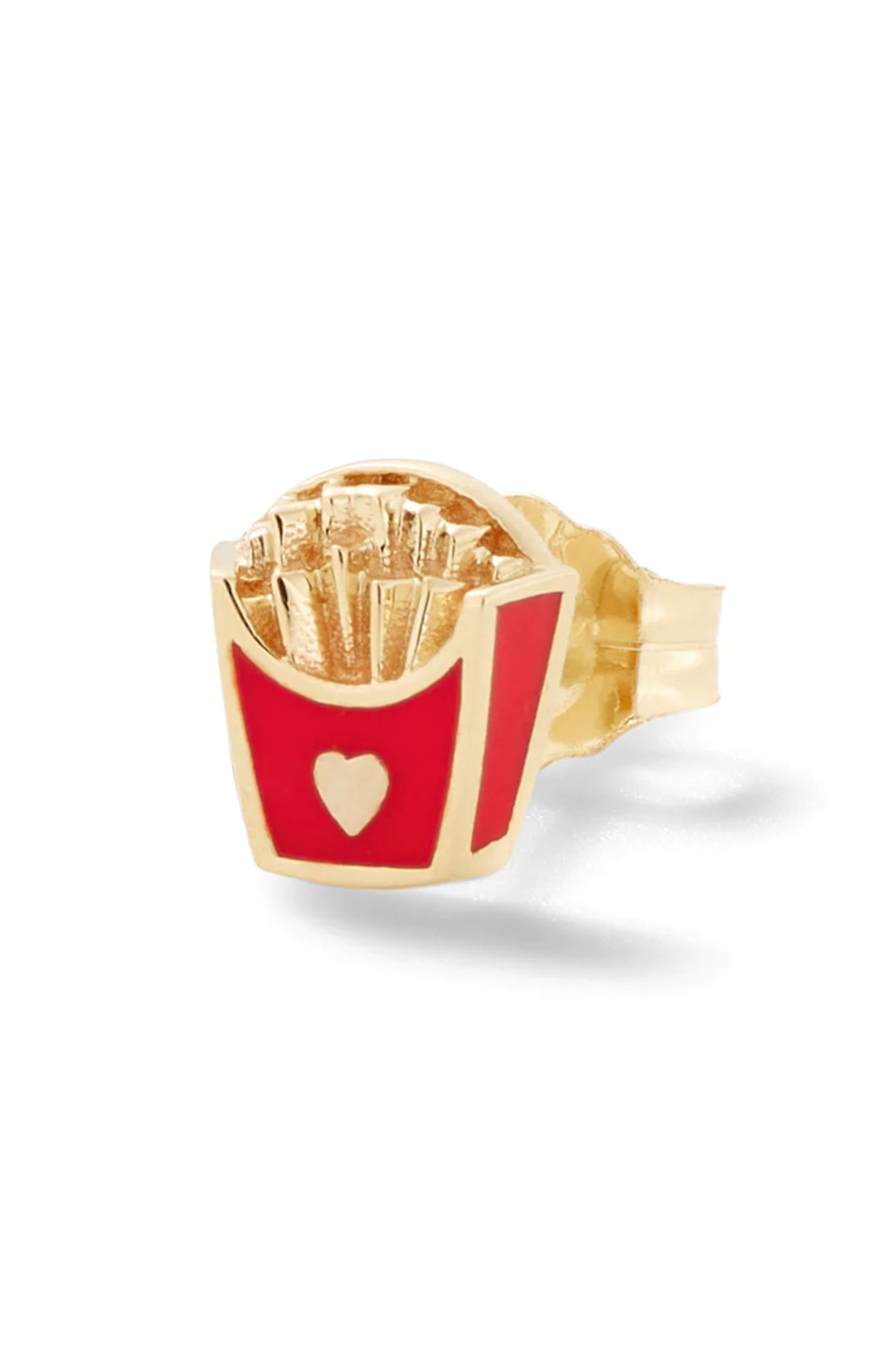 (Single) French Fry Stud in 14k Yellow Gold and Enamel