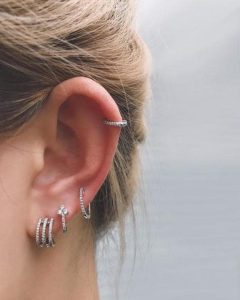 Diamond Triple Huggie Illusion Stud Earring in 14K Yellow – Left