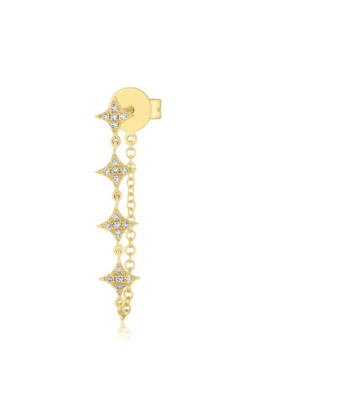 Single Multi-Diamond Sparkle Chain Stud Earring in 14K Yellow Gold