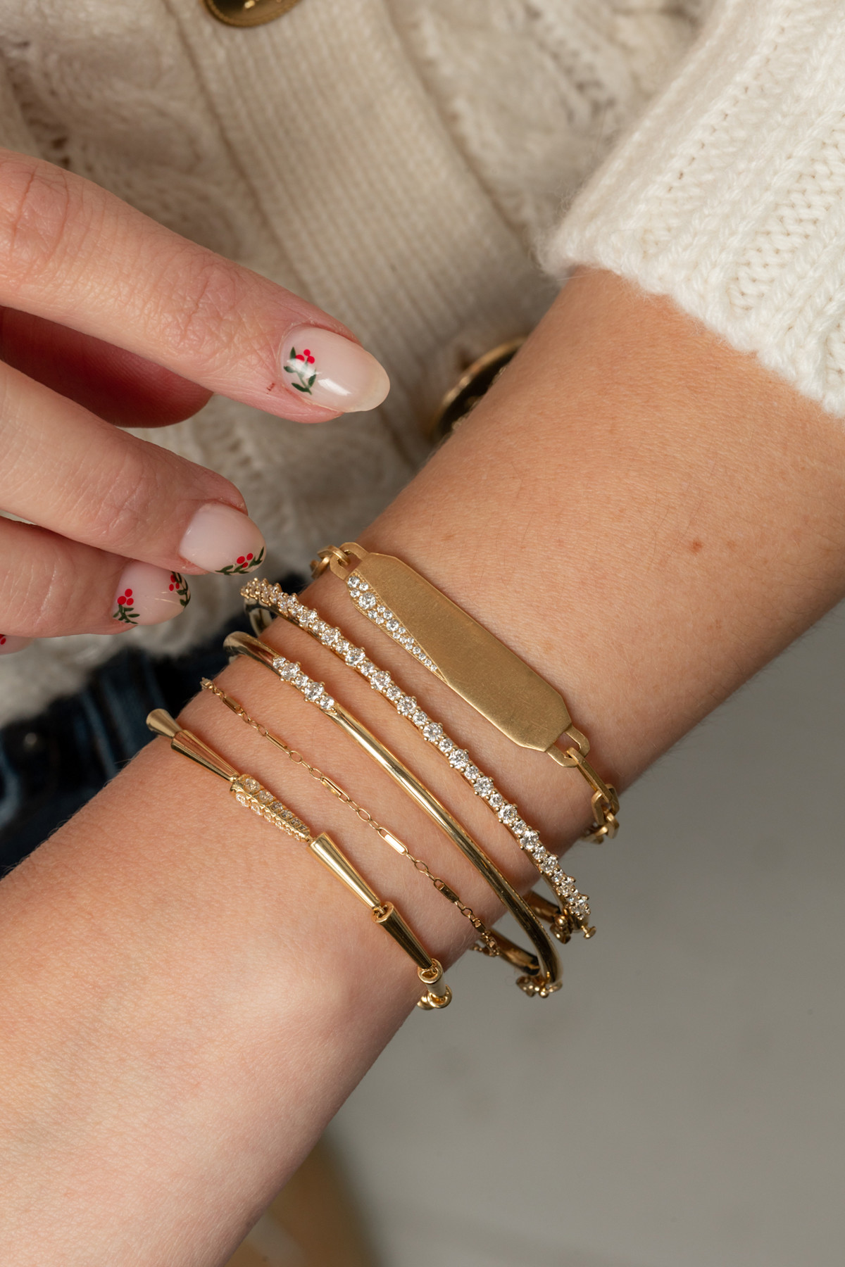 The Small ID Bracelet Features an Engravable Nameplate With a Slice of Mixed Sized Pave White Diamonds On a Solid Gold Chain.