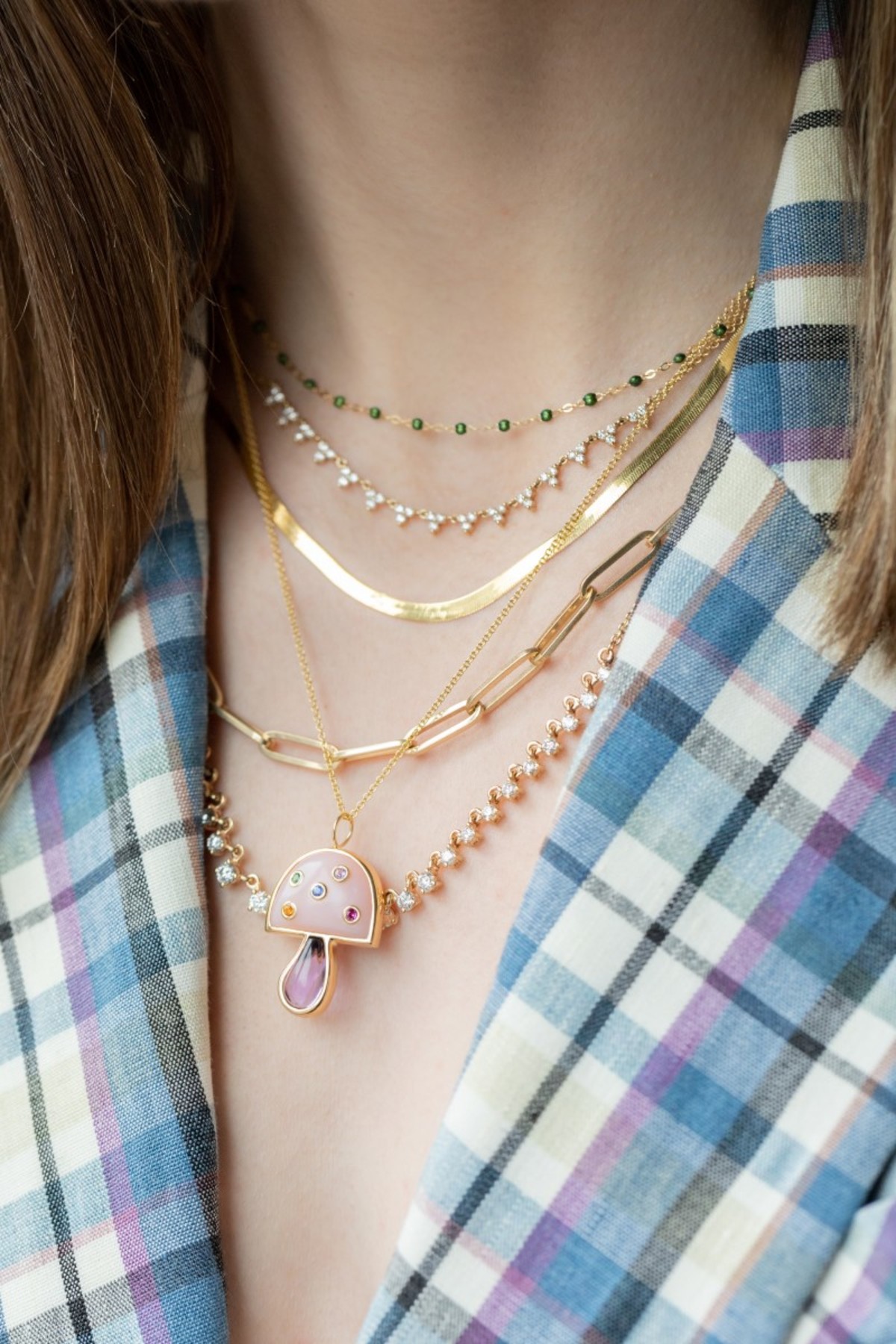 The Magic Mushroom from Brent Neale’s Down the Rabbit Hole Collection, which draws inspiration from the buoyant vibes of the 1960s and ‘70s, specifically the work of fine artists Hieronymus Bosch, Ellsworth Kelly and David Hockney. Nostalgic and fantastical, this is jewelry rooted in the belief that true luxury is unique, surprising and fun.