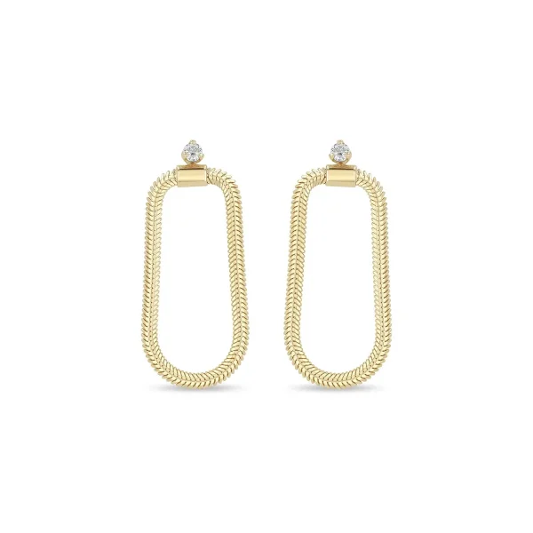 Small Oval Snake Chain Loop Earrings with a Prong Set 2.4mm Diamond in 14K Yellow